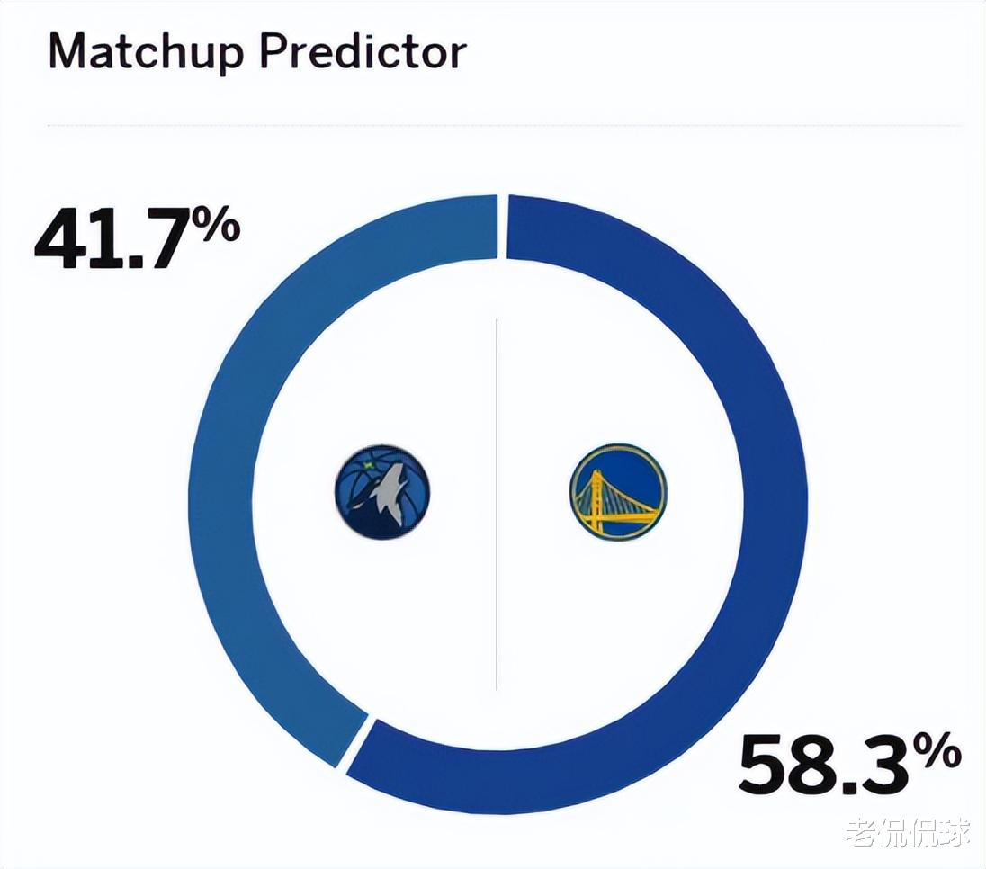 赛前,美媒ESPN对本场比赛进行了胜率预测,勇士队胜率高达58.3%,森林狼胜率则仅有41.7% ,差距还是挺明显的。