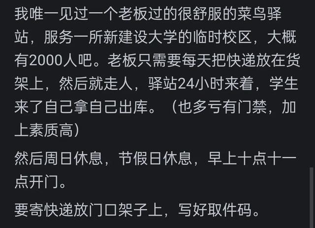 主要看你要不要脸,我是沈阳的,沈阳的驿站再恶劣也不至于啥也不管,基本都是报尾号然后给你找,偶尔还得帮老人点点退货什么的,目前在深圳出差,这边的驿站啥也不管,自己找自己出库,一问不吱声,每天早上摆完货就在那玩手机,躺着收钱了,而且选了一个特别偏的地方省房租,走过去老费劲了,有时候还提前关门,没办法开了丰巢会员,丰巢在小区门口,近一些
