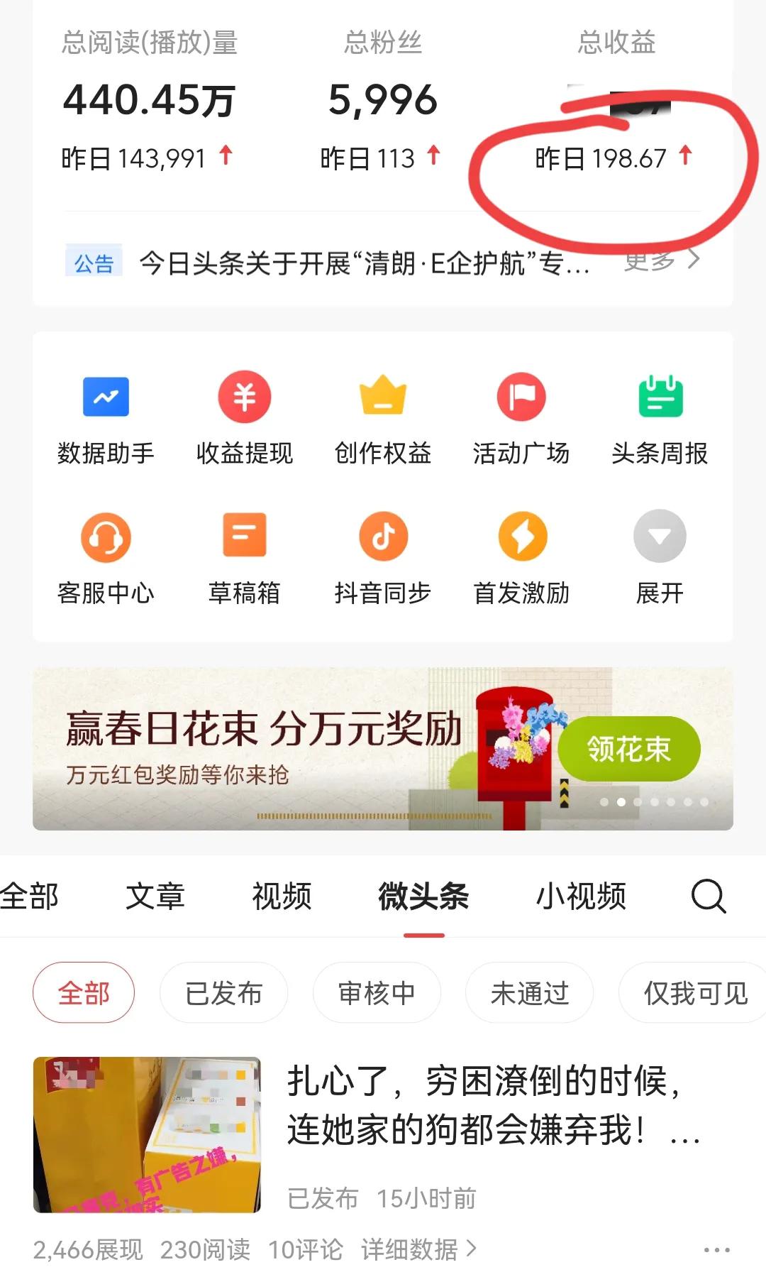 从几天前的几毛钱,到今天的198块钱,自媒体已经让我尝到了甜头,也给了我坚定走下去的信心。