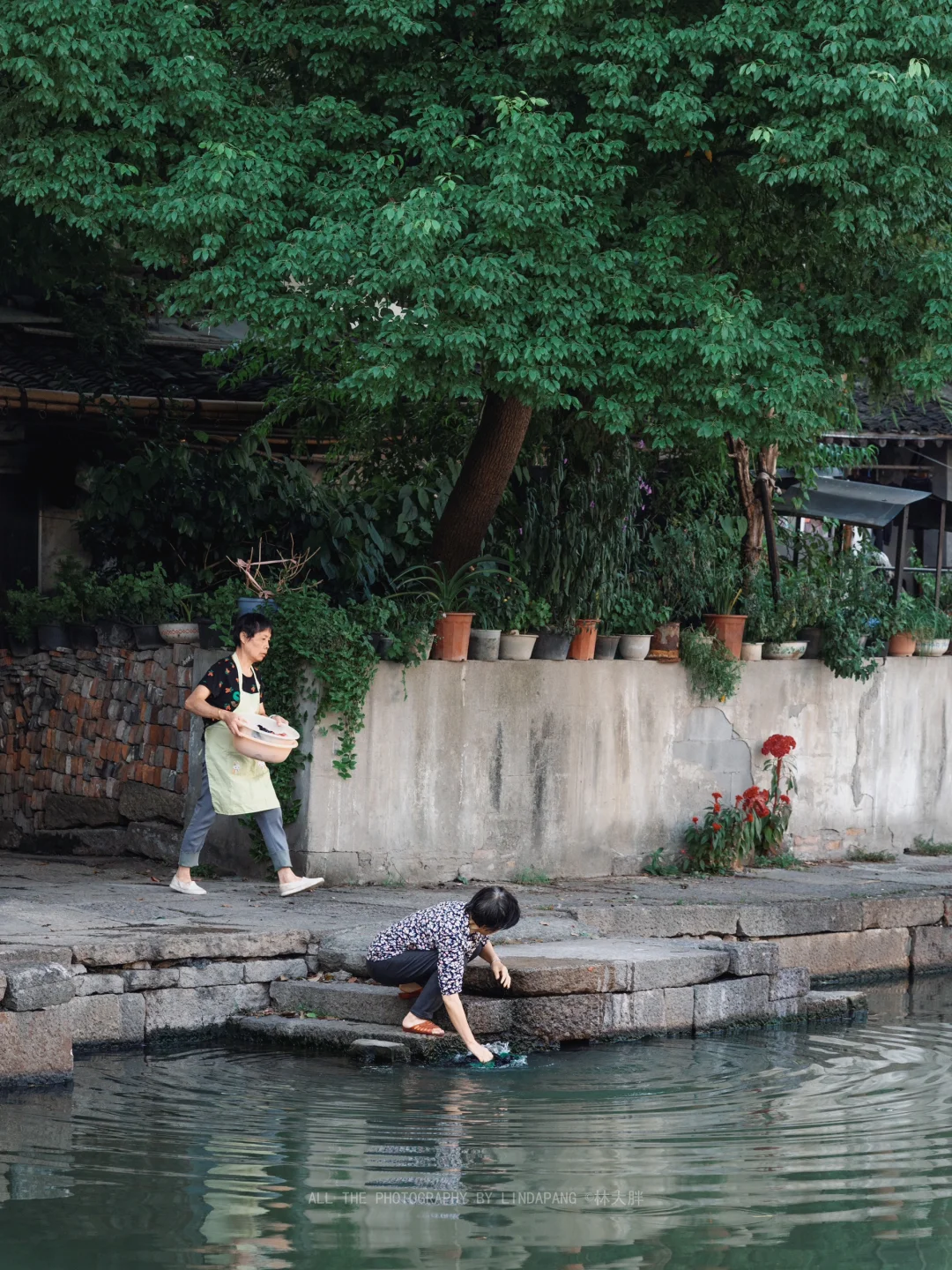 清晨河边洗衣的阿婆,廊棚下晒酱货的店家