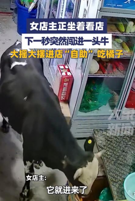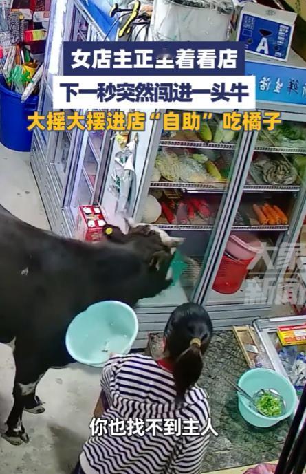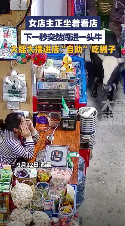 “意外的惊喜!”9月22日,西藏,一女子晚上看店时玩手机,突然听到门口传来走路的声音,本以为来顾客了,谁料,抬头一看竟然是头牛,牛径直走到装橘子的箱子,叼起橘子就吃,女子鼓足勇气将牛赶了出去。网友:这是改善伙食来了? 那天晚上,女子百无聊赖的坐在店里在玩手机,就在她正沉浸在手机屏幕时,突然从门口传来一阵走路的声音,女子起初以为是顾客来了,准备站起身去招呼,谁料抬头一看,门口竟然站着一头大黑牛。 这头牛大摇大摆地走进店里,眼看着它一副从容的样子,女子顿时傻了眼,她本能地想,它会不会突然冲过来撞到自己?想着想着,腿都有点发抖,不过幸运的是,这头牛并没有什么攻击性。 它的目的很明确,径直走到了店里摆放橘子的箱子旁,低下头开始叼橘子吃,整个过程十分淡定,好像是来享受这一顿“美餐”的。 女子当时的心情可能是又气又怕,但面对眼前的情景,实在不知该如何是好,她想牛虽攻击性不算强,但万一它打翻了其他东西,或者把店里的东西弄坏怎么办? 于是她鼓起勇气,拿起了一个塑料盆,朝着那头吃橘子的牛挥了挥,牛似乎并不想与她发生冲突,只是慢悠悠地转过身,向外走去,最终牛被赶到了店外,这时的女子松了一口气。 当她回想起事情的经过,她告诉大家,实际上这头牛已经在附近的村庄溜达了好几天,耳朵上还挂着标签,看起来是有主人的。 虽然它已经逗留了这么久,但并没有见到有人来找它,女子也感叹,幸亏它只是吃了橘子,没有造成更大的损失。 这件事不禁让人感叹,牛的主人似乎并不太着急,毕竟一头牛可值几万块钱,按理说应该是丢失了要及时去找才对,但这头牛已经好几天不见踪影,牛主似乎并不焦虑。 或许是因为村里人都知道,这种放养的牛和羊,通常都有个“领头的”,负责带领它们过日子,所以丢了一头牛也不至于乱了秩序。 这一事件虽然听上去像是一件荒唐的事,但却也暴露了放养牛羊在农村地区的一个现象,牛和羊通常是自由放养的,牧民把它们带到山上后,只有偶尔来检查一下,看看它们的状况,牛羊之间有一种天然的“领头羊”现象,一个比较成熟的个体会带领其他牛羊,避免它们走丢,彼此之间维持一种自发的秩序。 这种管理方式也让人联想到,虽然现代社会的农牧业逐步走向科技化、自动化,但在很多地方,传统的方式依然占据着重要的地位。 这种相对“自由”的放养方式,让牛羊有了更多的生存空间,也让养殖户在管理上更为轻松,但也正因为这样,牛羊失踪的情况时常发生,而主人们似乎也不急于寻找,仿佛他们有自己的方式来应对这种情况。 说到这,大家或许会觉得,这件事除了让人忍俊不禁外,也给人留下了一些思考,现代生活中,我们每个人都在追求效率和快节奏的生活。 然而在一些偏远的地方,大家却依然保持着传统的生活方式,这种方式也许在外人看来有些落后,但也正是因为它,才让这些乡村的生活有了一种不同的节奏和独特的美感。 对于这件事情,大家有什么看法? 信息来源:《女店主正坐着看店下一秒突然闯进一头牛,大摇大摆进店“自助”吃橘子》大象新闻