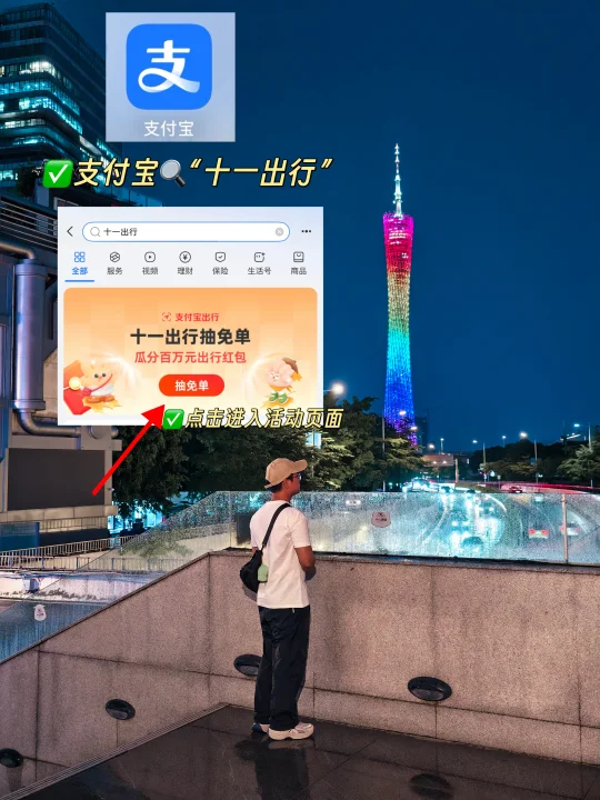 参与方式:打开支付宝--- 🔍【十一出行】可以直接进入活动会场---点击“抽免单”,邀请好友入队,进行匹配猜拳游戏
