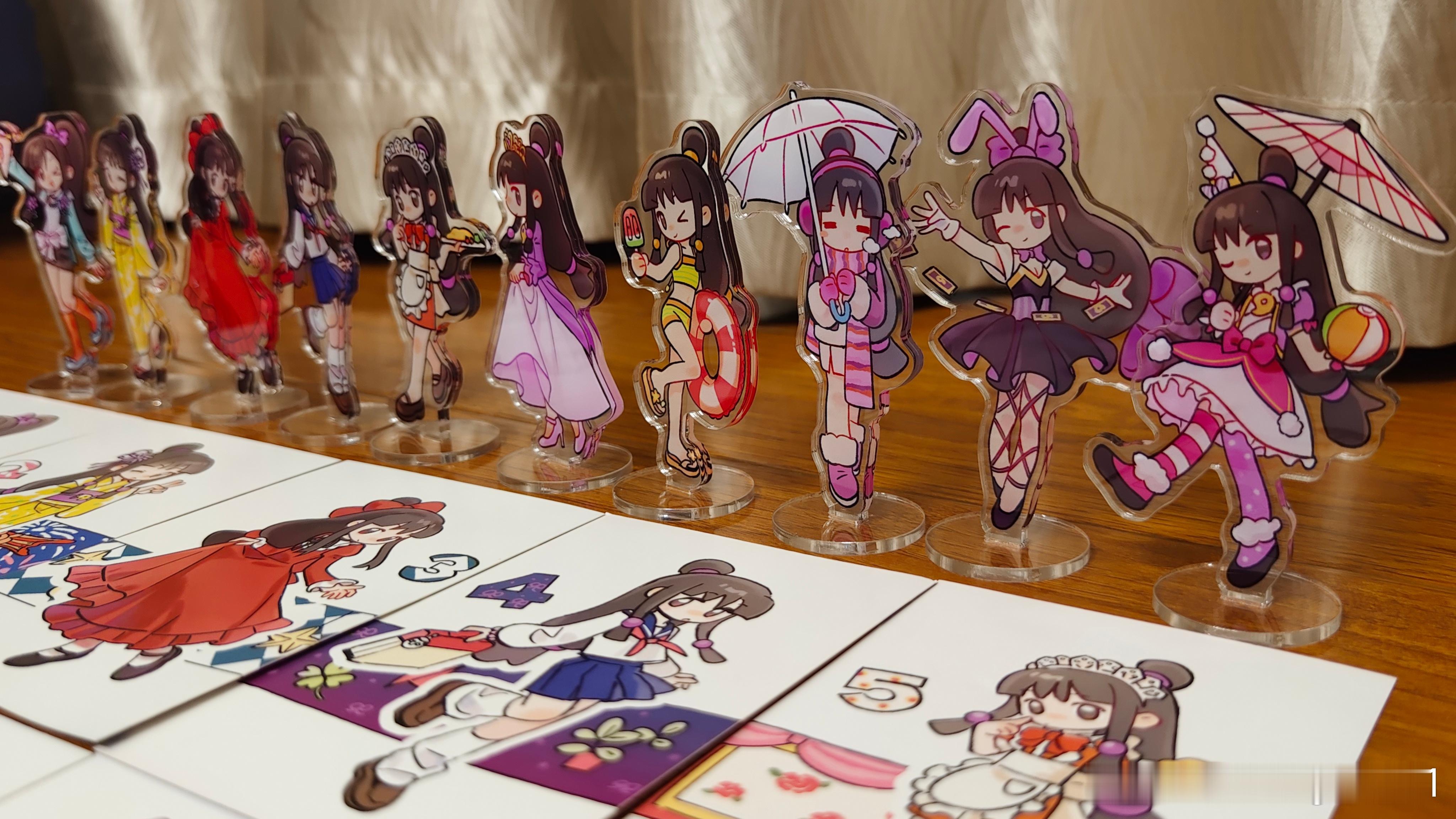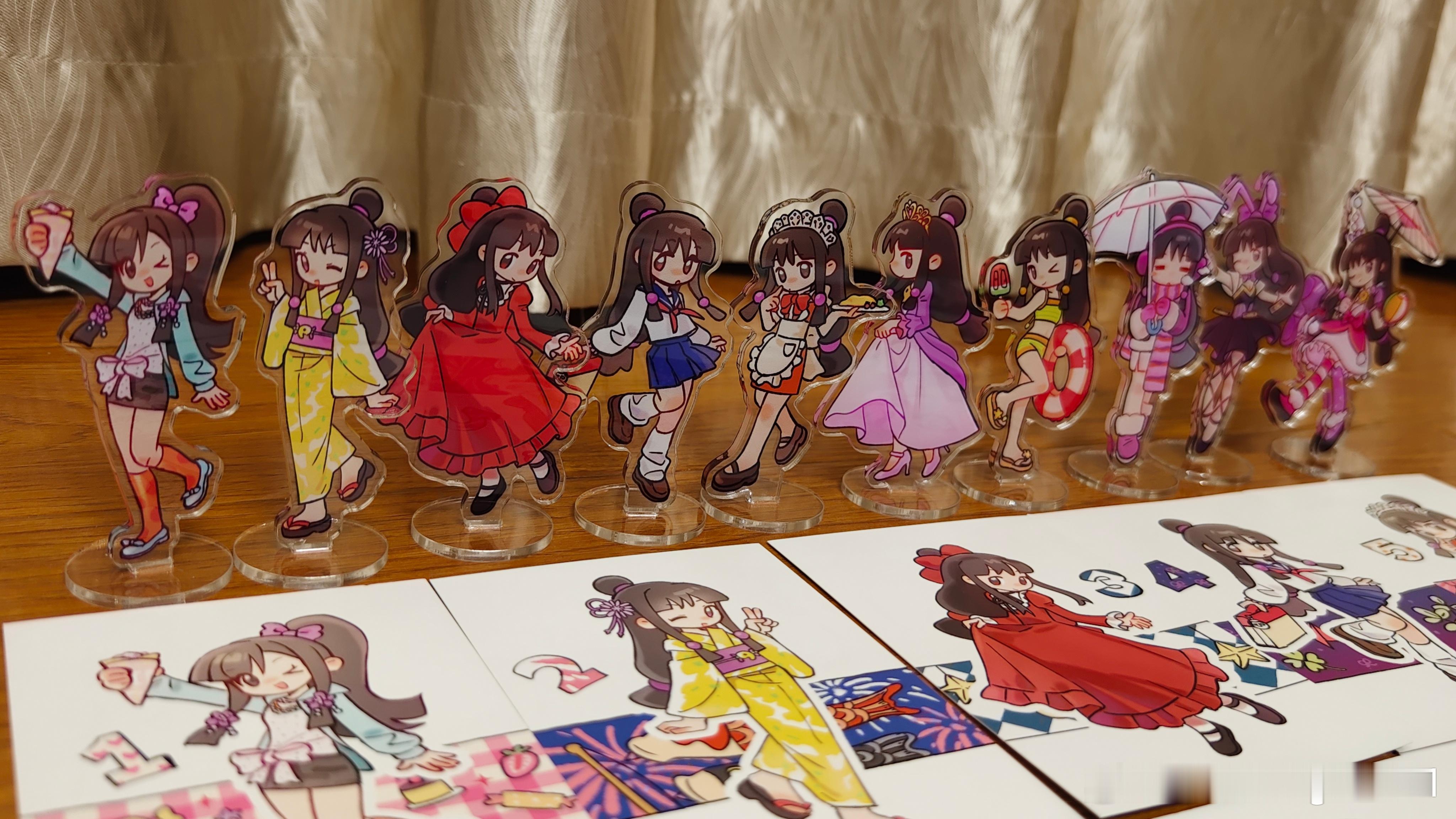 为了套入展示效果,立牌单独调整过颜色/造型(比如头发明度的统一),所以和明信片上会有些许出入~