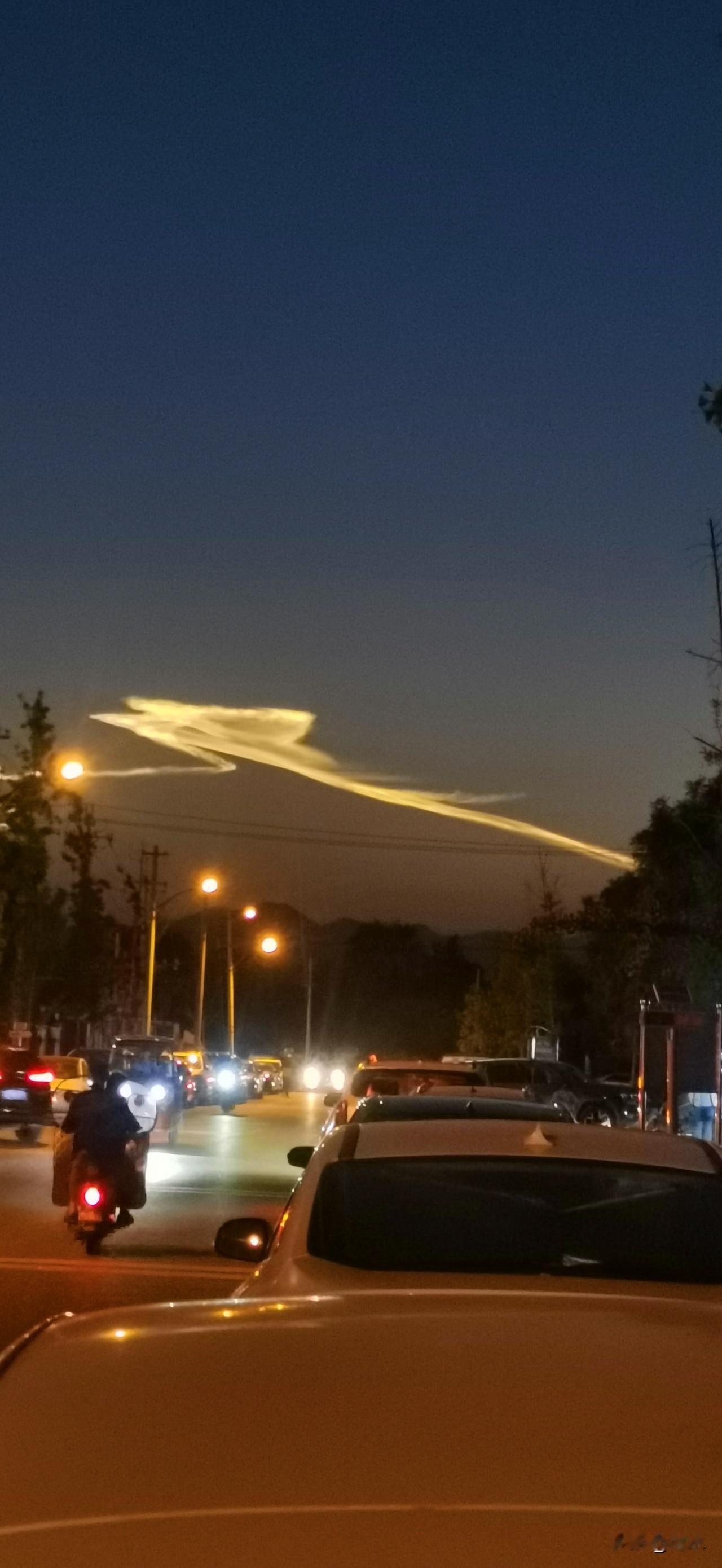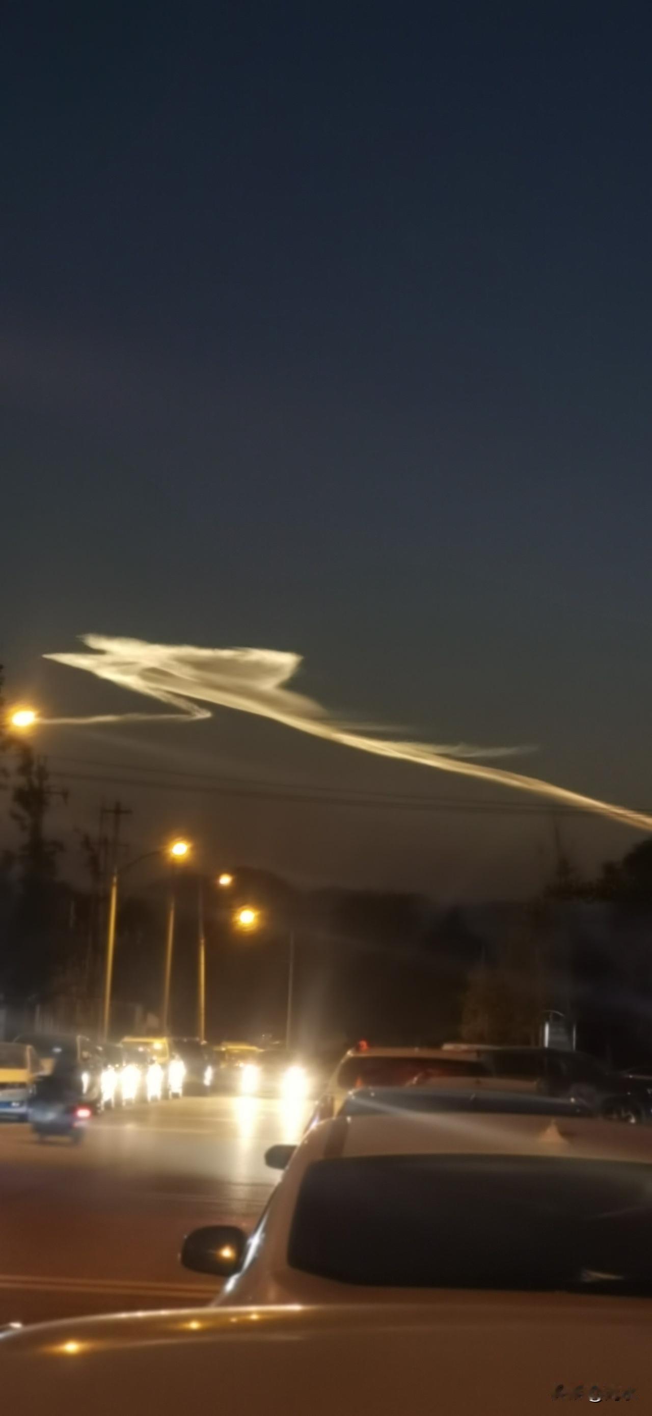 刚刚,北京的天空中,出现了一道亮光,拖着长长的尾巴,也不像飞机留下的,也不知道是什么光,但是很亮,持续了很长一段时间。你们知道这是什么光吗?我旁边的老头说,没见过。还说这不是找拍嘛!他也拿起手机一通狂拍。