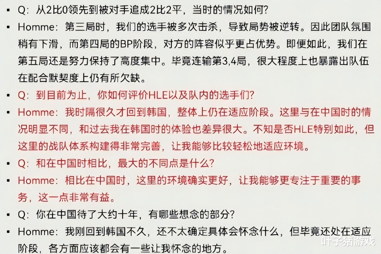 在采访中,Homme提出的两个观点,备受玩家的关注。一个是LCK目前的战队体系,与十年前相比已经有了天翻地覆的变化,这让他感到相当惊喜,能够轻松适应这个竞技环境。第二个就是LPL的情况与LCK有明显的不同,在LCK他能更专注于比赛本身,这一点让他受益匪浅。