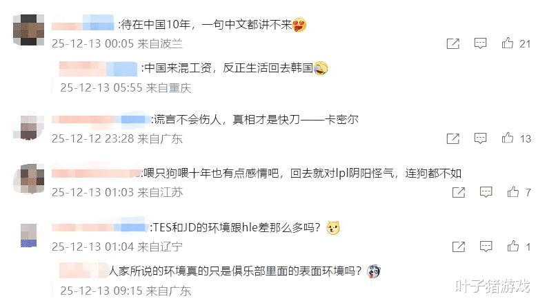 对此,很多玩家都觉得不可思议:“待在中国10年,一句中文都讲不来”,“喂只狗喂十年也有点感情吧,回去就对lpl阴阳怪气,连狗都不如”,“中国来混工资,反正生活回去韩国”……