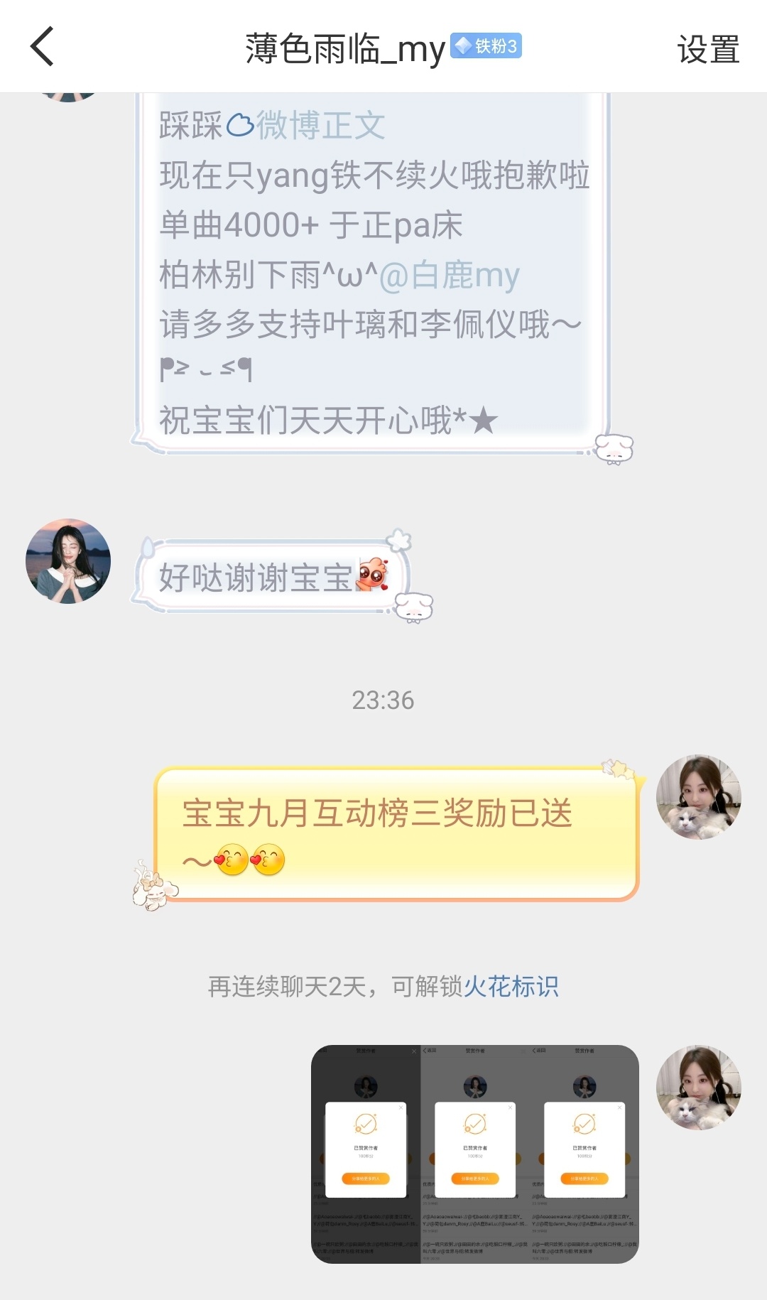 九月互动榜奖励已送~~谢谢宝宝们这个月的陪伴[么么哒][么么哒]妃妃的快乐生活