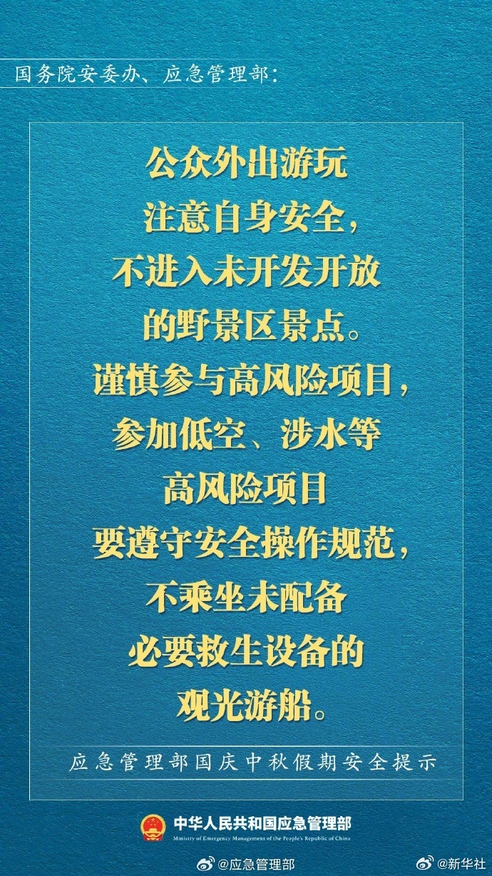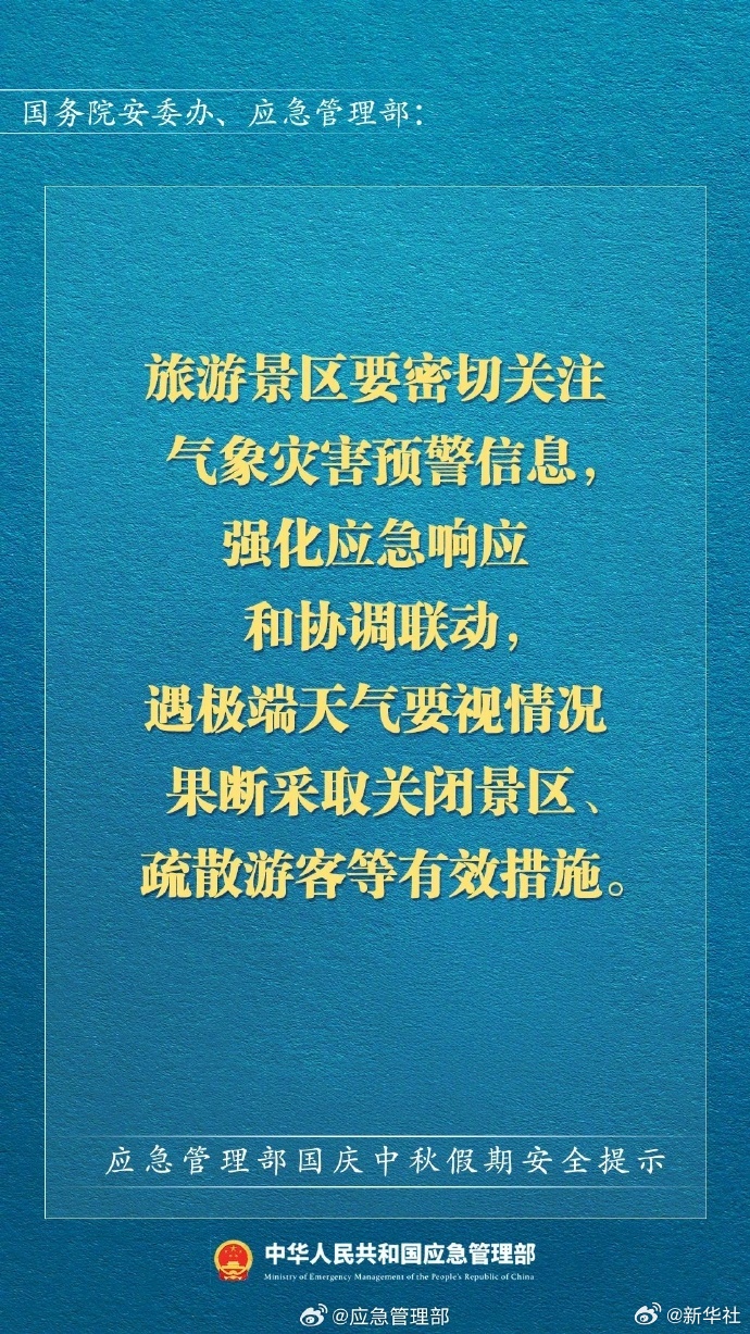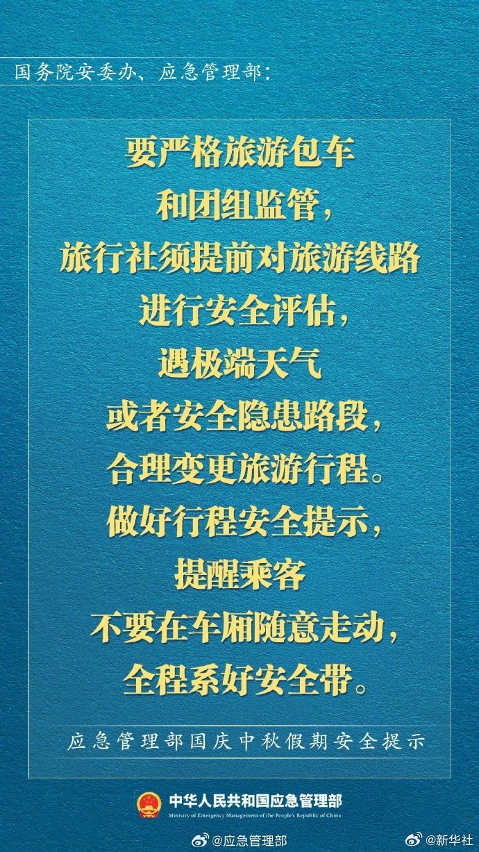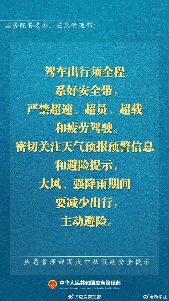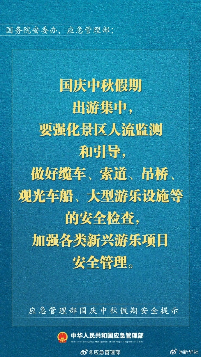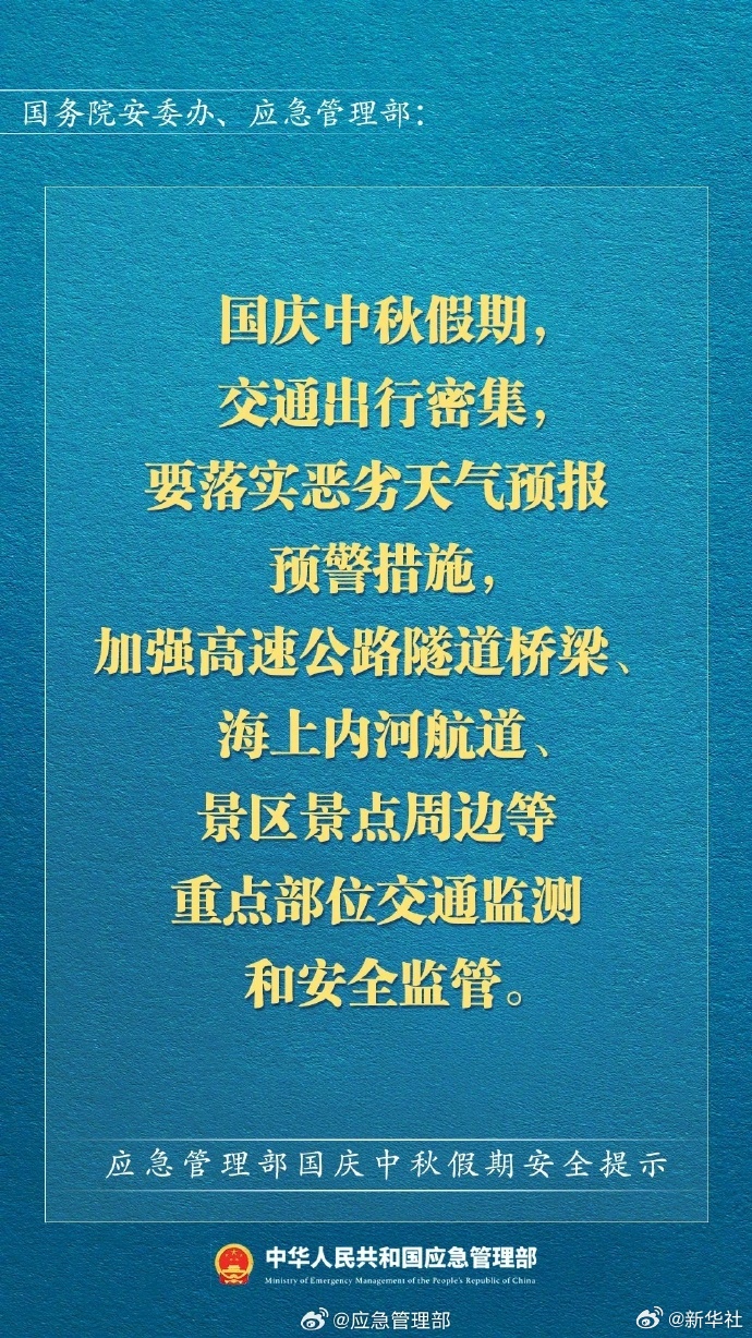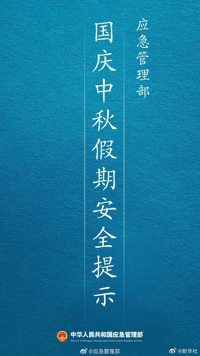 【#国庆中秋假期安全提示#】国庆中秋假期将至,各地交通迎来出行高峰。#应急管理部发假期安全提示# 转发,提醒!