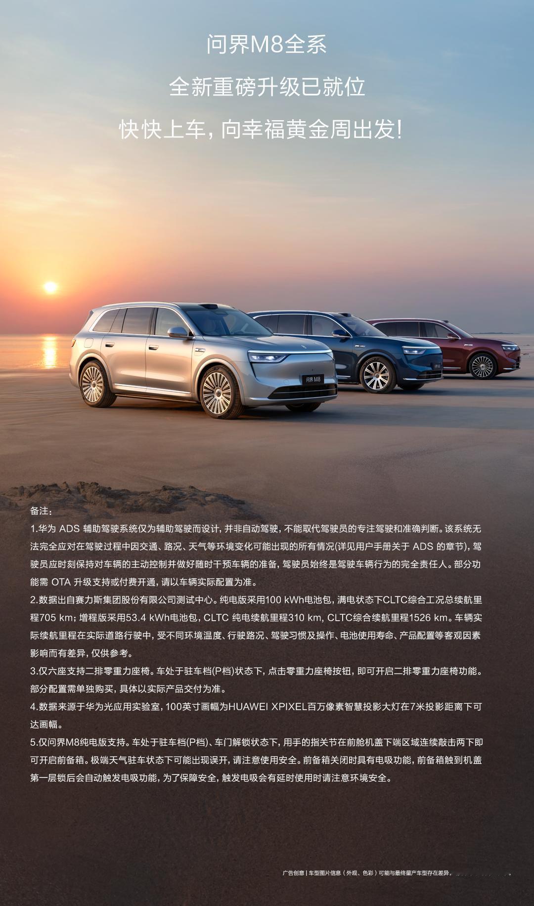 “四十万级SUV首选”?问界M8——没错,正是在下。 一则问界M8的新战报出来了——累计交付突破10万辆,连续5个月稳坐40万级销量榜首。按下这个成绩布标,其实在关注了众多车型的OTA更新后,我发现问界M8的这次9月升级有一个很打动人的理念:它不仅在发展新用户,更不忘老用户。 我们来看看它带来了什么。辅助驾驶层面,华为乾崑智驾ADS 4让车辆应对临停车辆绕行更果断,博弈能力更强。用户体验层面,从收藏车位可以设置偏好位姿这样的贴心功能,到车位到车位2.0:支持直接选择园区/地库目标车位,发起“车位级”导航,都在细节上提升了品质感。更不用说那些充满趣味的情景灯语和舱内互动游戏了,它们让科技变得有温度。 这一切都说明,问界M8的豪华,是一种“活的豪华”。它不满足于交付时的顶尖状态,而是通过OTA这座桥梁,与用户保持长期连接,持续输送价值。这,或许就是问界M8能够赢得市场高度认可的核心魅力所在。问界M8全系OTA升级