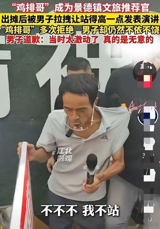 鸡排哥被男子扯拽衣服要求站高点演讲这个人的举动很让人反感,要么就是来蹭流量的,要