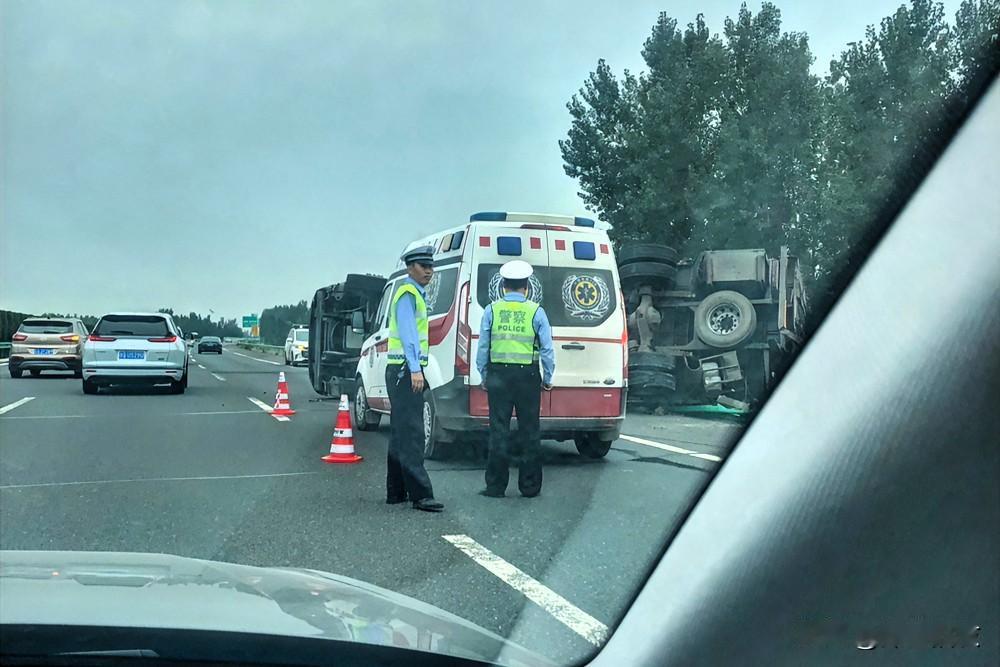 800米走了20分钟, 前面大货车翻车,希望人员安全。 警察来了,120来两辆