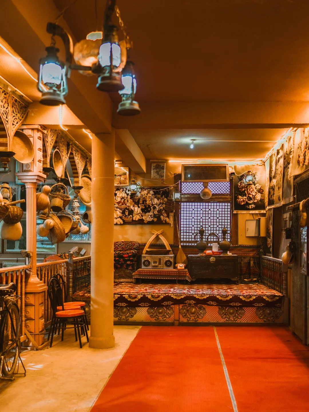 4️⃣老爷爷的古董店在吐鲁番市区内,最出片的地方在门口,到里面参观需要交10元。里面大多是七八十年代的生活物件儿,还有当地民族服饰可以免费穿来拍照。