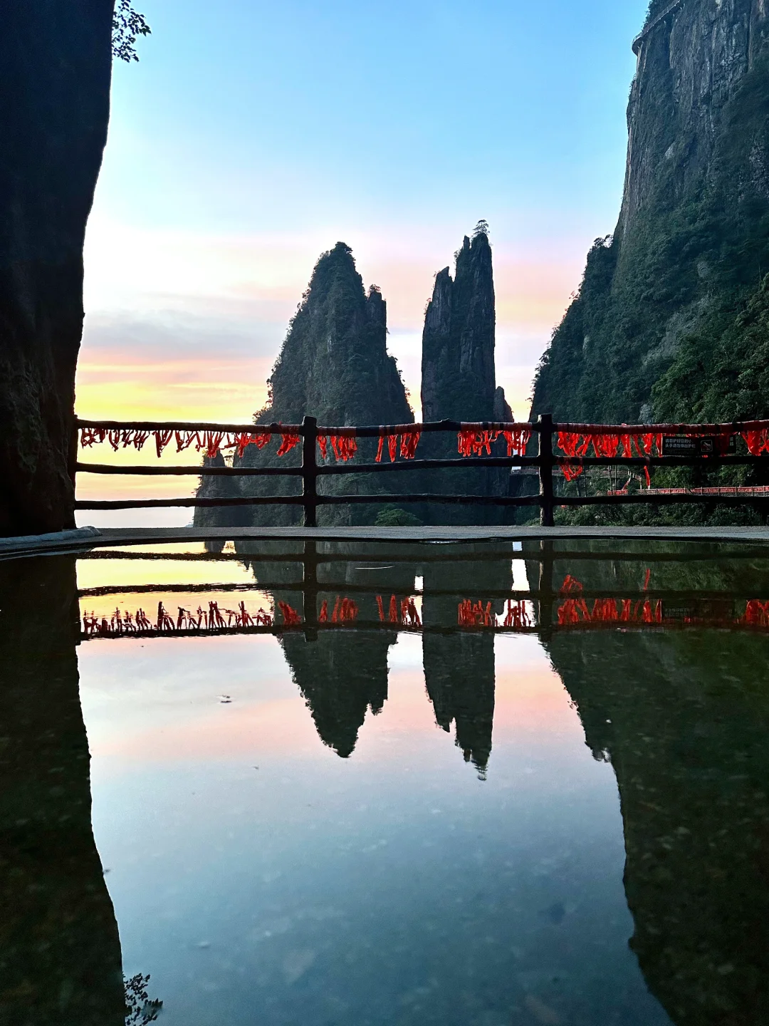 ✔️倒影池:地上爱心倒影出背后的山峰,拍照很出片