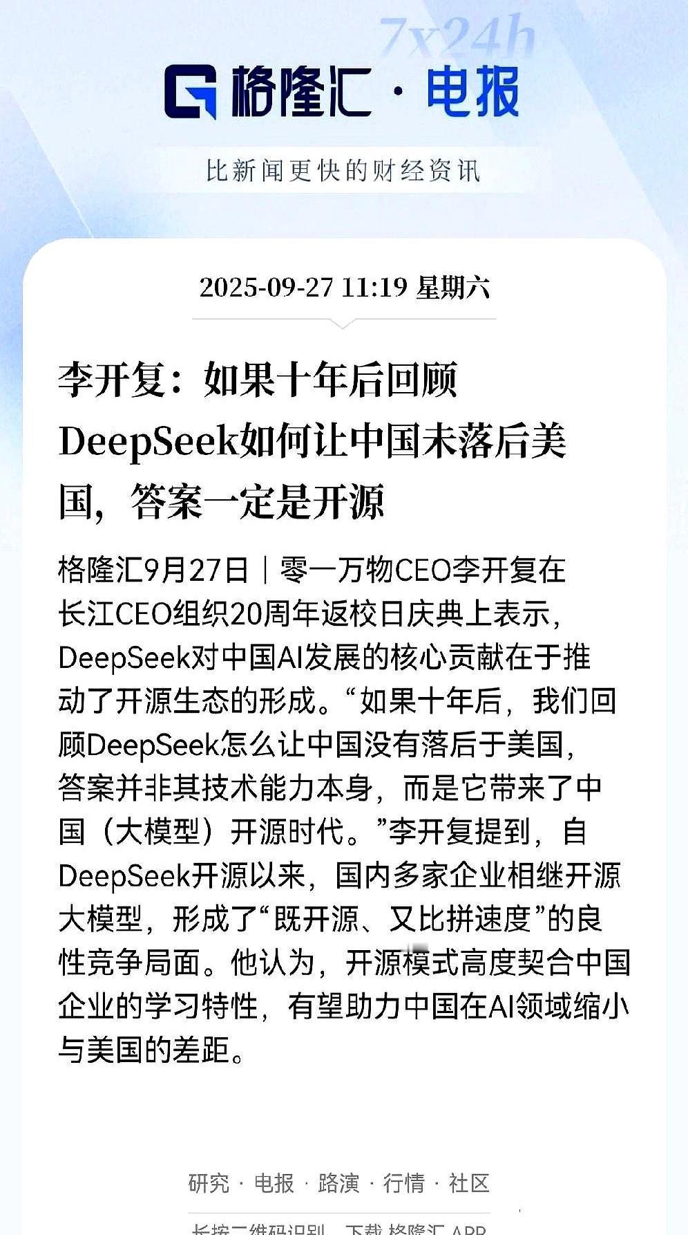 “1750亿参数直接白给,美国佬想卡脖子先问中国开发者答不答应。 ”李开复话音未