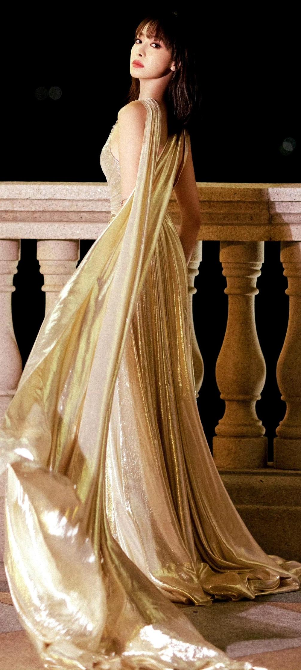 宋茜:一场古典与摩登交织的视觉盛宴。她身着鎏金礼服,如古希腊女神降临,流光溢彩的面料随身姿摇曳,每一寸褶皱都折射出奢华质感。单肩设计露出精致肩颈线,高叉裙摆又添几分飒爽妩媚,腰间与肩颈的钻饰点缀,恰似星辰落于裙间,在夜色中熠熠生辉。 她的妆容精致且富有层次,红唇与深邃眼妆碰撞出冷艳气场,齐刘海与中长发的搭配,柔化了礼服的华丽感,多了份灵动俏皮。或回眸凝望,或侧身伫立,在复古栏杆与都市夜景的映衬下,将优雅与率性、古典与现代完美融合,每一个姿态都宛如艺术大片,美得极具张力,让人一眼沉沦。 明星时尚 明星美女