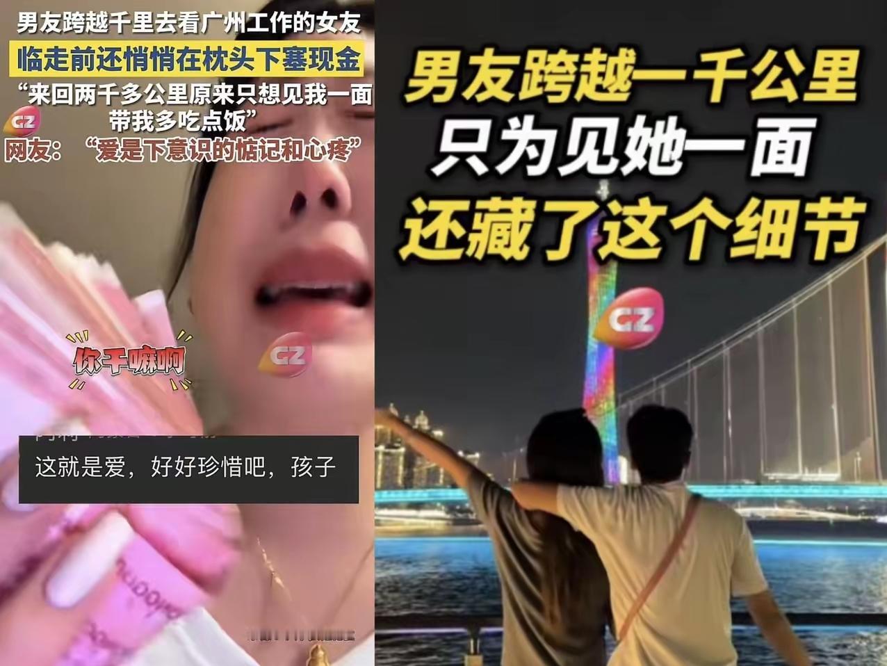近日,广东广州,女孩送跨越千里来看她的男友走后。突然,她在枕头下发现 男友塞的一沓现金,顿时大哭了起来。 这哪是钱啊,是怕她受委屈、又悄悄顾着她好强心的真心! 异地恋好几年,他没说过什么华丽的承诺,却把在意全揉进了日常里:为了给惊喜,没提前说就买了高铁票;到了女孩的出租屋,没歇口气就挽起袖子打扫,把杂乱的书桌、堆着的衣服都收拾得整整齐齐;带她和朋友吃饭时,总记得她爱吃的菜,不停往她碗里夹;看着她每天挤地铁赶工、加班到深夜还得自己煮泡面,心疼得直叹气。知道女孩性格好强,直接转账肯定会被拒绝,他早就在武汉提前取好现金,走的时候趁她送自己到门口、转身的间隙,悄悄塞在了枕头底下。 其实异地恋哪有什么“天生能长久”,靠的全是两个人都往一块使劲。不是隔着屏幕说“多喝热水”,而是记住她的小脾气,把关心藏进她能接受的方式里;不是每天敷衍几句“我忙了”,而是愿意听她讲工作里的糟心事,跟她分享路边看到的小猫、吃到的好吃的;偶尔的小惊喜也不是负担,是让彼此知道“再远我也记着你”的定心丸。不像有些异地恋,只剩一个人在原地咬牙坚持,另一个人早就把感情熬成了应付。 好多人看完说“原来好的异地恋是这样的”,其实爱从不怕距离远,怕的是不用心。