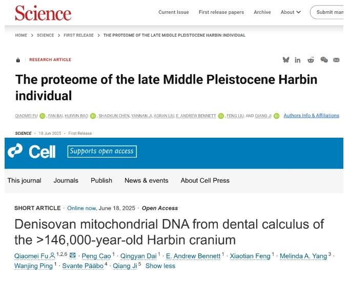 《哈尔滨中更新世晚期人类个体的蛋白质组》《距今至少14.6万年的哈尔滨人类头骨牙结石中发现丹尼索瓦人线粒体DNA》,用“基因钓鱼”检测出来了!联合团队首次建立了古蛋白全自动化鉴定人群的方法体系,产生了迄今最高质量的古人类蛋白组数据;优化了古DNA提取实验和针对微量古DNA系统化建立了多种生信分析方法,另辟蹊径实现了牙结石中微量中更新世晚期人类古DNA的首次提取。