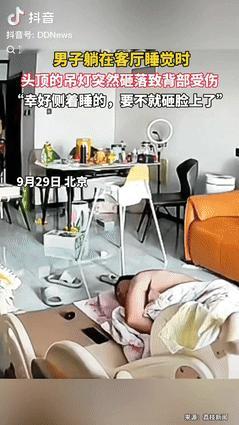 “不幸中的万幸!”北京一男子躺在客厅睡觉时,头顶的吊灯突然砸落,男子瞬间惊醒,并尖叫出声,妻子闻讯赶来后,发现男子后背受伤了,但好在他是侧着身睡的,不然灯就砸在男子脸上了,网友:真祸从天降! 据顶端新闻 9月30日报道,妻子原本在忙自己的事情,听到尖叫声后,她立即提高警惕,跑了出去,只见丈夫的周围是灯具,她缓缓抬头望向天花板,瞬间就懵了。 回过神的她赶忙询问男子的伤势,男子就是感觉后背有点疼,妻子扶他坐到了沙发上,好在只是虚惊一场,只需要等结痂就好,但男子光是回想起来就心有余悸。 客厅灯光那么刺眼,男子竟然能在这样的情况下睡着,可见他的睡眠质量有多好,不过明明能到卧室睡,再不济也能躺在沙发上,但男子偏偏选择了在地板砖上。 妻子也没有制止,毕竟这是男子的个人选择,况且家里除了他们两人外,也没多余的人了,所以没觉得哪里奇怪,直到事情发生,两人才感觉后怕。 平常很少会注意到天花板,都是平视着看家里的家居设备,灯确实安装了一段时间,谁也没能料到会这样,对于这个结果,两人除了接受,也没有其他办法。 只能把坏掉的灯给清理扔掉,再买个,不过不能让门外汉安装,就怕重蹈覆辙,经过这事,夫妻俩应该也不会再灯下久待了。 对于这件事情,大家有什么看法? 信息来源:顶端新闻 2025年9月30日