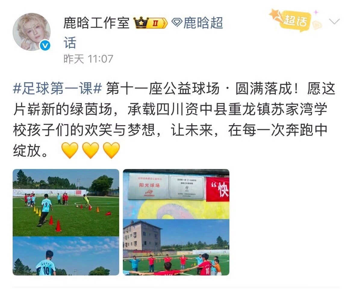天啦!鹿晗已经默默的捐赠了11座公益足球场了~这是真的爱足球,再为足球默默付出一份力