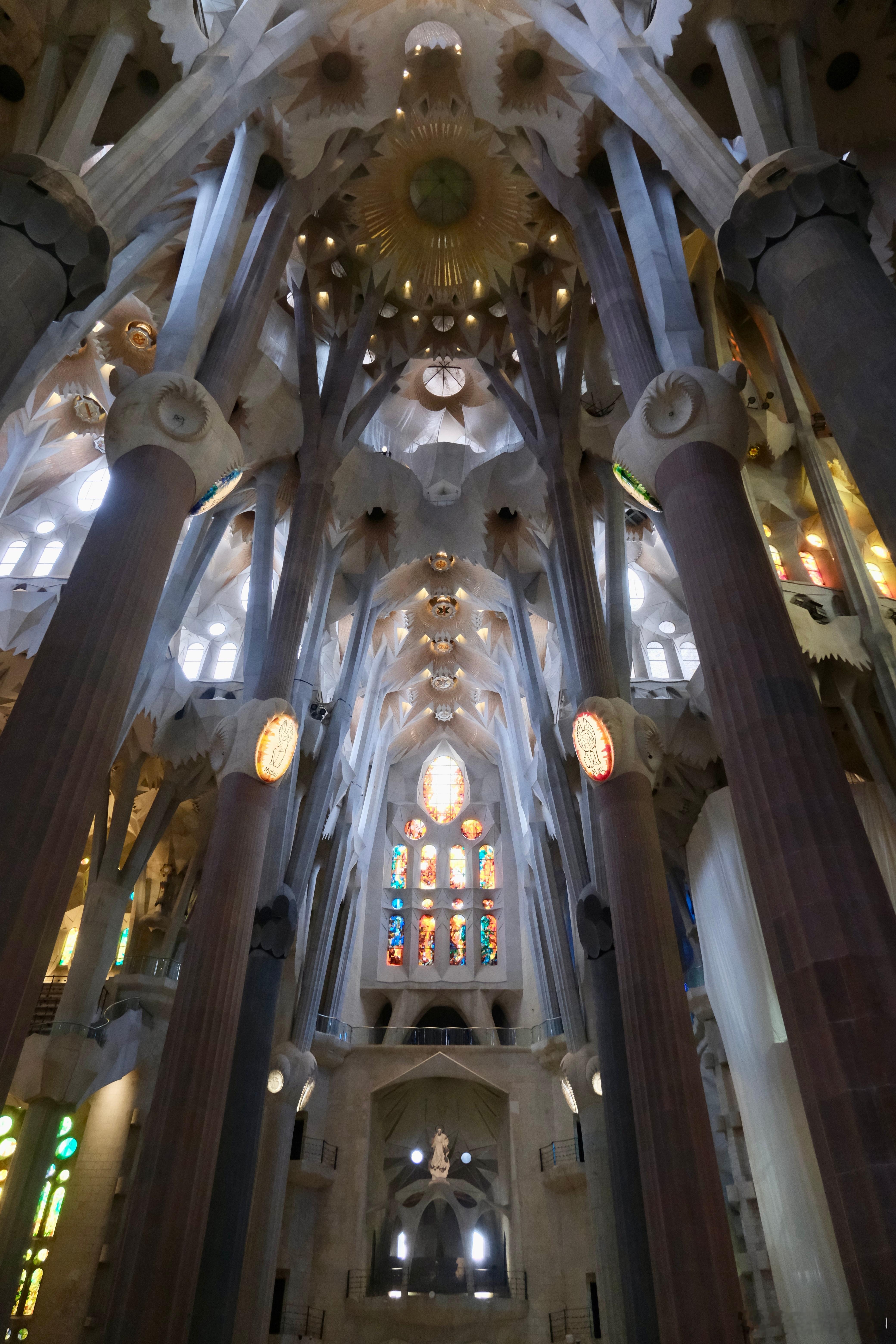 从外观就能看出复杂度极高,不过真正震撼的是走进教堂内部,巨高无比的的挑空,以树干为灵感的立柱,粗壮优美,有有一种富有生命力的感觉。