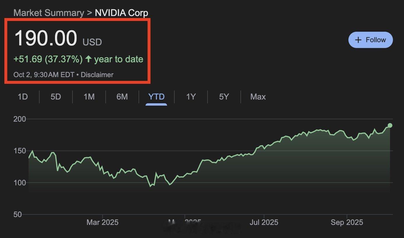 英伟达股价突破 190 美元