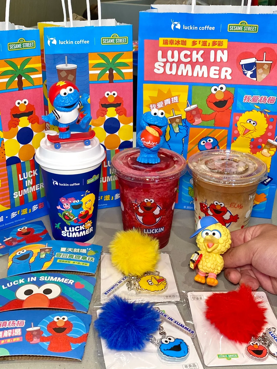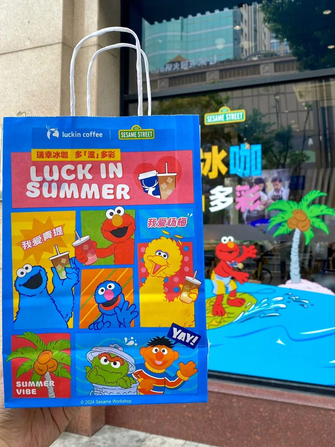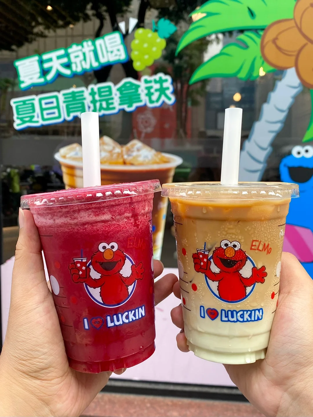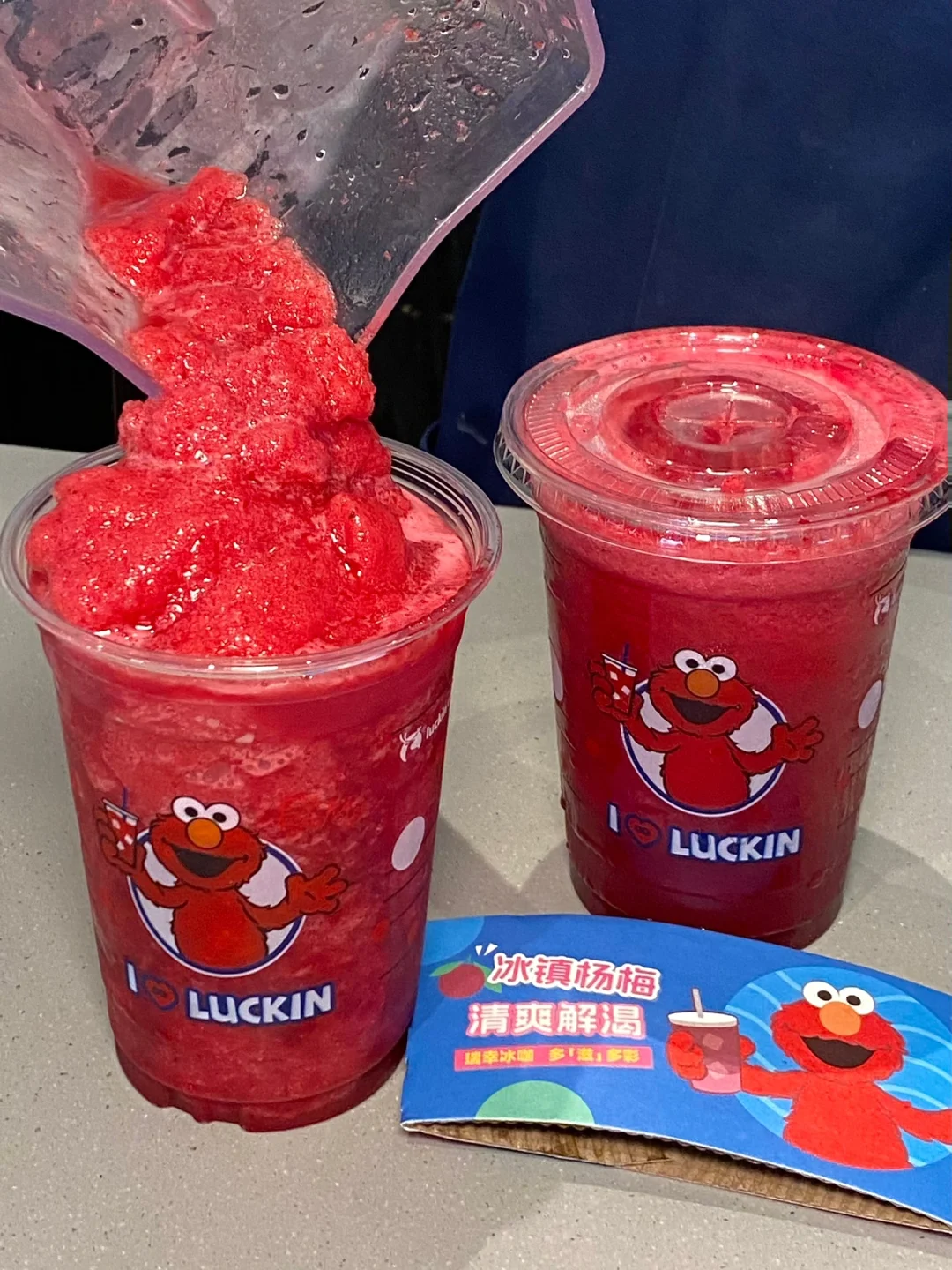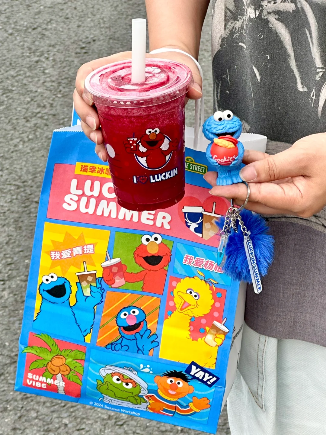 终于等到瑞幸冰镇杨梅瑞纳冰,王者回归了,真的是每年夏天必喝的一杯!酸酸甜甜的细腻的杨梅沙冰,冰爽十足,怀念这口已经很久了!! 一起回归的还有夏日青提拿铁&小铁!青提风味同样很清新!瑞幸的冰咖是不是开挂了啊! 这次还联名了《芝麻街》!4种杯子、2种纸袋、2款杯套,还有毛球挂件!!一眼望去就是多姿多彩,夏日的清爽感拿捏了🫴!