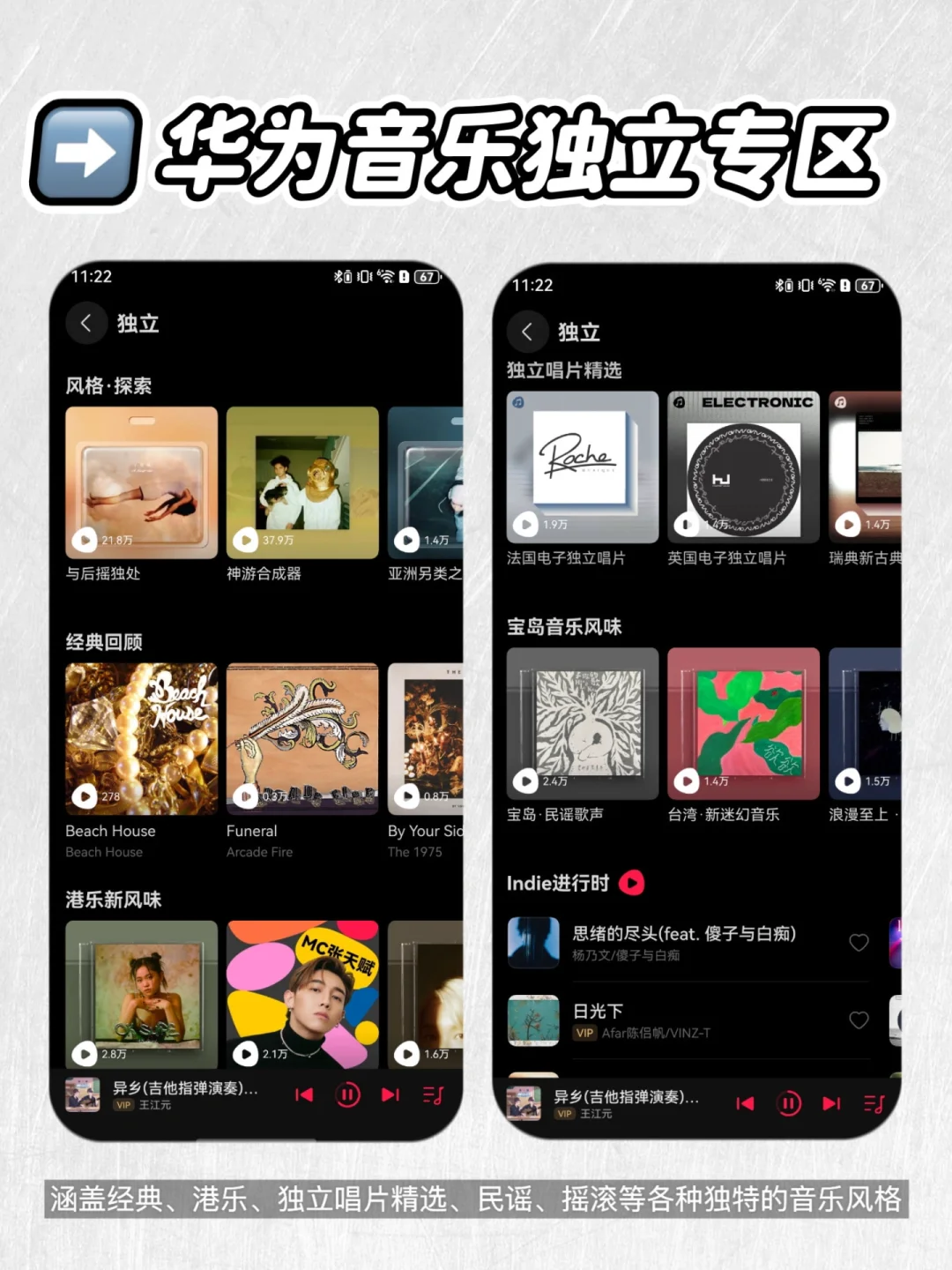 涵盖了经典、港乐、流行、国风、民谣、摇滚等各种独特的音乐风格,还有最新发行、独立唱片精选