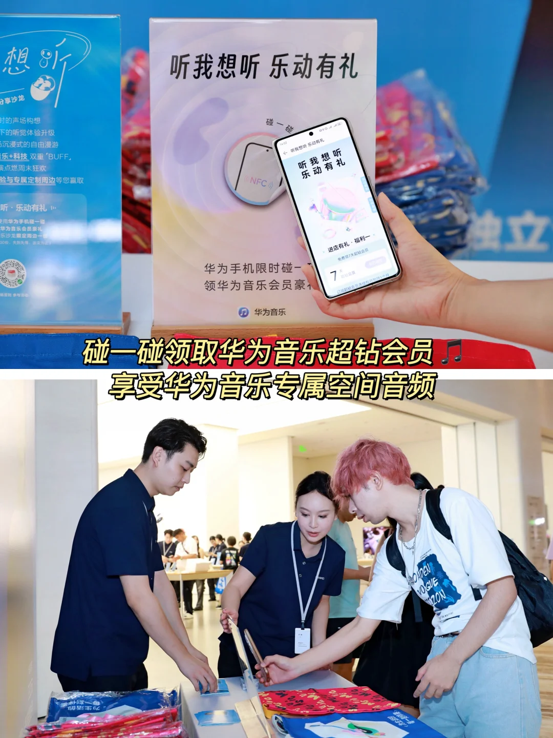 现场不仅可以用手机NFC碰一碰领取华为音乐超钻会员