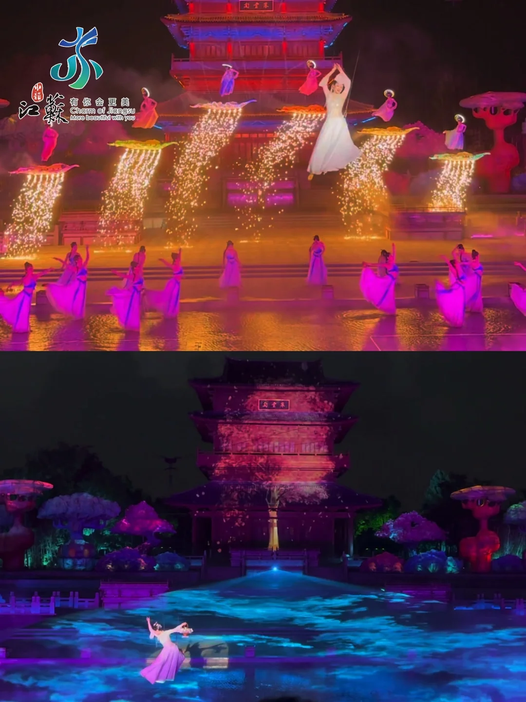 《天仙缘》演出,以“董永传说”为蓝本,用威亚飞天、光影矩阵、盐灯烟火,打造“天宫凡间”无缝切换的视觉神作!七仙女凌空起舞、凤凰于飞的场景美到窒息。