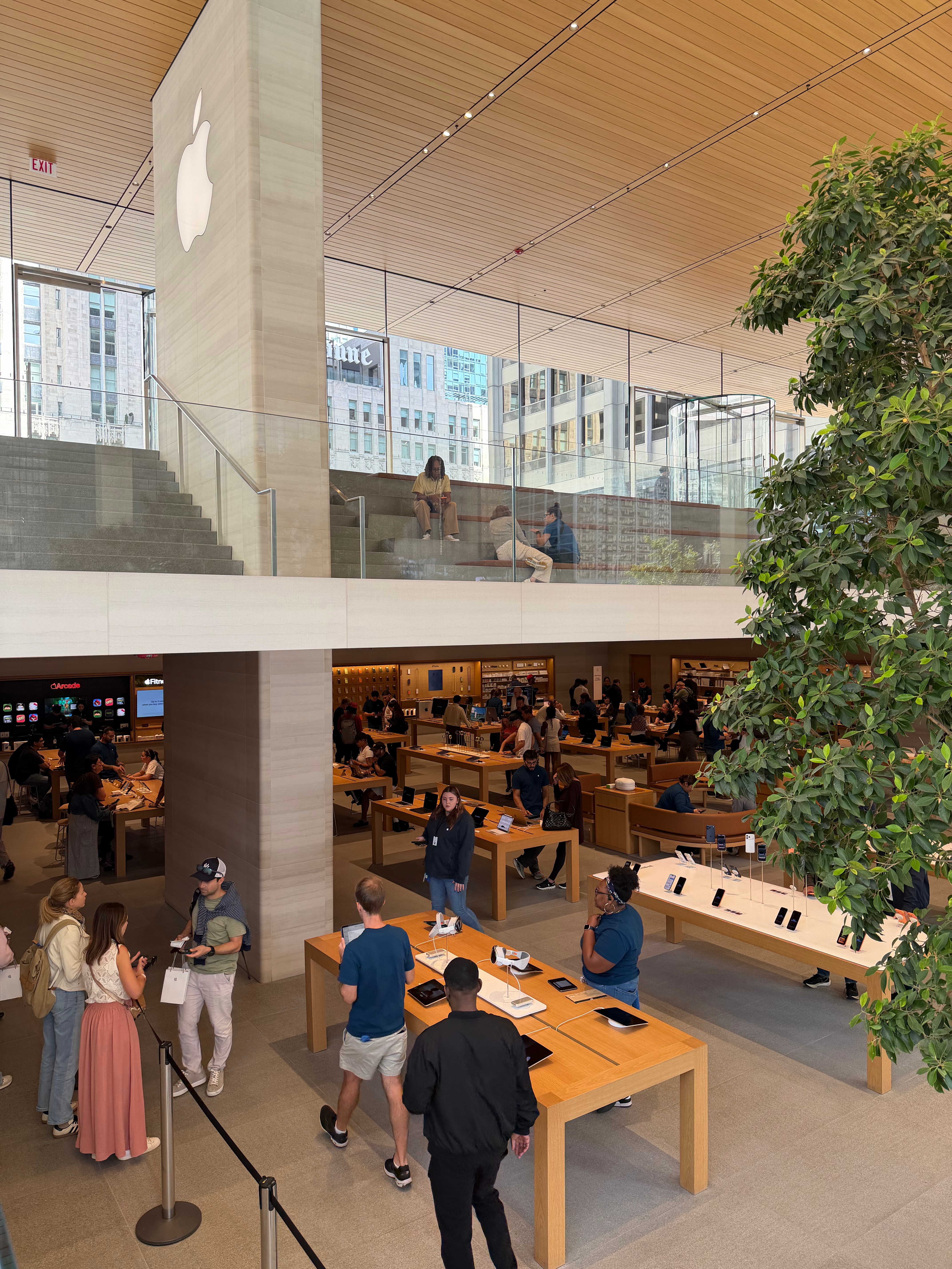 这家Apple Store毫不夸张,绝对是全球排名前10的,甚至我认为都可以拿第一的Apple Store,位置巨好,就在特朗普大厦对面。