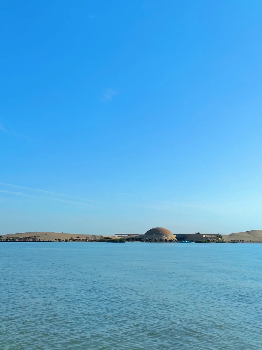 接着,我们乘坐游船前往沙漠,这一路上我都坐在靠窗的位置目不转睛地看着窗外,那一片沙漠与湖泊共生的风景真的太震撼了!到达沙漠后,我们就各自排队去玩各种娱乐项目,比如【漂移艇】【360极限飞球】等。
