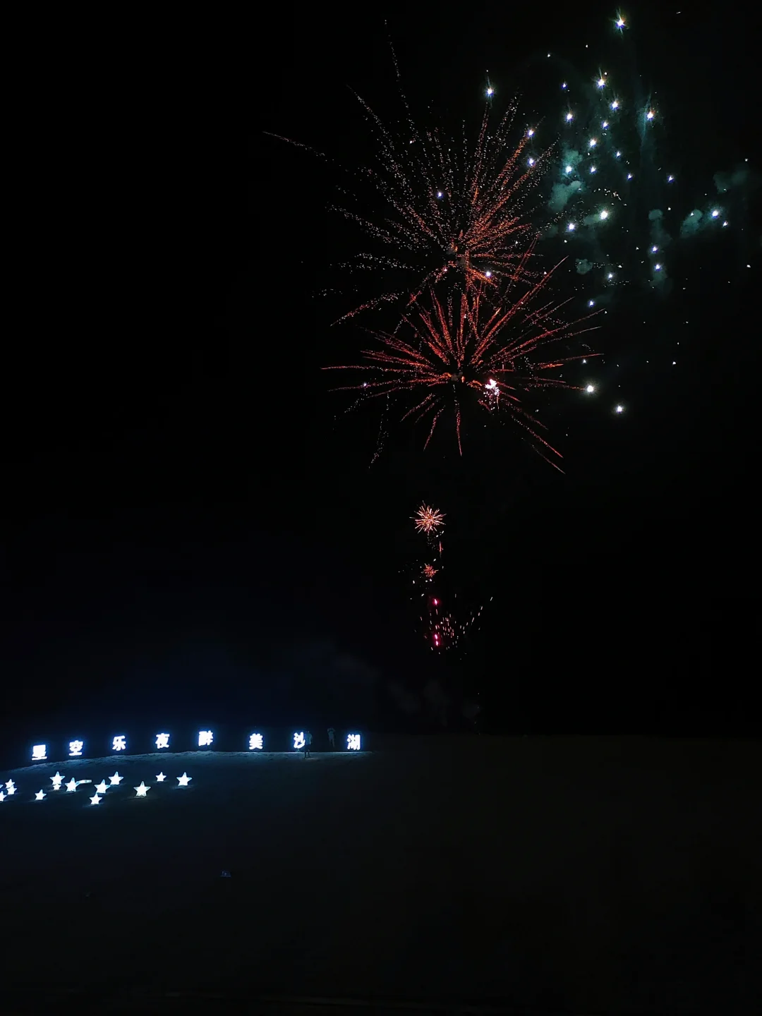随后,我们陆续赶往参加宁夏文旅组织的音乐party,台上有很多多才多艺的同学表演,气氛特别燃,就像一场野生的沙漠音乐节🎵。在party的尾声,沙漠上空绽放了一轮绚烂耀眼的烟花🎆