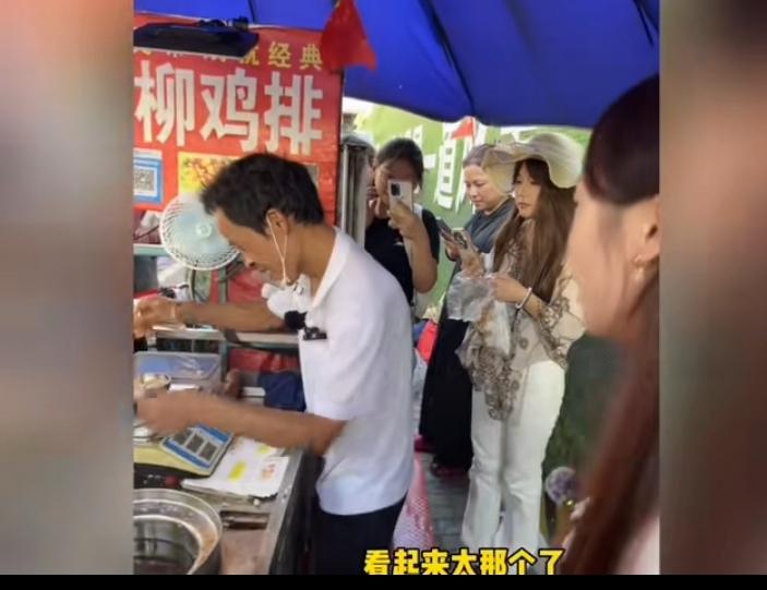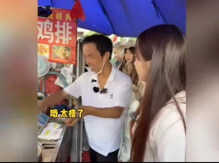 一名韩国网红特意前往景德镇买鸡排,她见到鸡排哥就说你太那个了,平时应该多吃一点,
