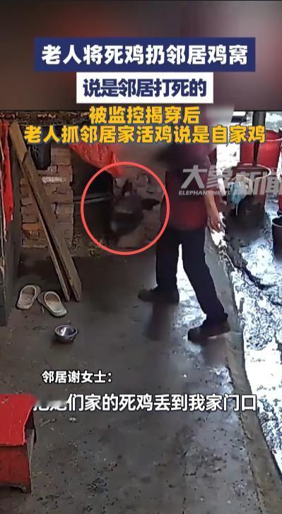 “太缺德了!”9月14日,江西瑞金,一农村老人将自家死鸡扔进了邻居家鸡窝,称鸡是被邻居家打死的,被监控画面揭穿后,老人又抓着邻居家活鸡说是自家的鸡,网友:这种恶人真是坏到骨子里! 这个世界上有好人就有坏人,现在老人作恶的事件屡见不鲜,总有人表示现在的老人好像是变坏了,其实这话不对,应该说是一些坏人变老了。 一农村老人发现自家死了一只鸡,第一反应就是要充分榨干这只鸡的价值,她眼珠子一转,提起自己家的死鸡就扔到了邻居的鸡窝里,随后就开始大喊大叫,称邻居把自己家的鸡打死了,必须要赔偿。 这锅邻居可不背,老人自作聪明,以为自己的计划天衣无缝,殊不知邻居家的鸡舍里安装了监控摄像头,老人的所作所为全被监控记录了下来,邻居直接拿着监控画面揭穿老人的阴谋。 老人见证据确凿,还是咬死不承认,转头抓住邻居家的一只母鸡表示这才是自家的鸡,这可把邻居气坏了,一个人怎么能如此无赖,真是张口就来! 不少网友认为这种人就是坏到骨子里了,现在这个老人年龄这么大认知也已经定型了,想改变非常难,把死鸡丢在人家鸡窝里有可能会传染瘟疫,抱着邻居家的母鸡说是自家的鸡更是无赖行径,算盘珠子都蹦到别人脸上了! 信息来源:《老人将死鸡扔邻居鸡窝,说是邻居打死的,被监控揭穿后老人抓邻居家活鸡说是自家鸡》大象新闻