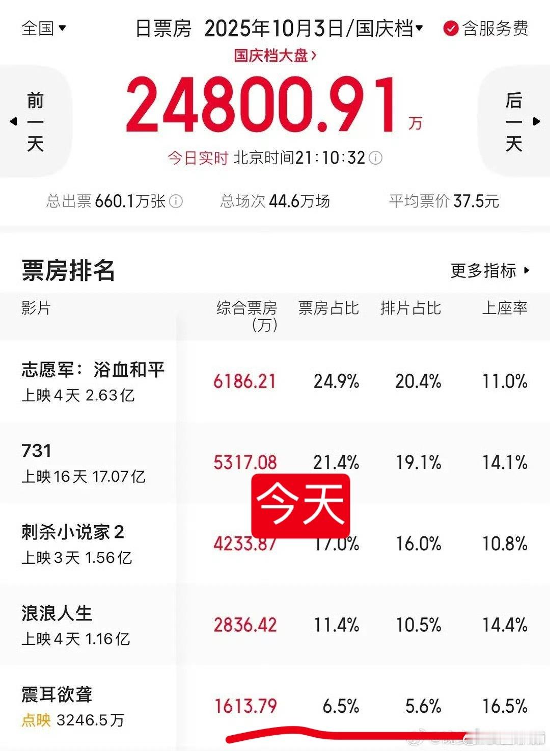 震耳欲聋明天就正式上映了,今天点映第二天逆跌了,这部口碑稳稳的,只要保证排片就?