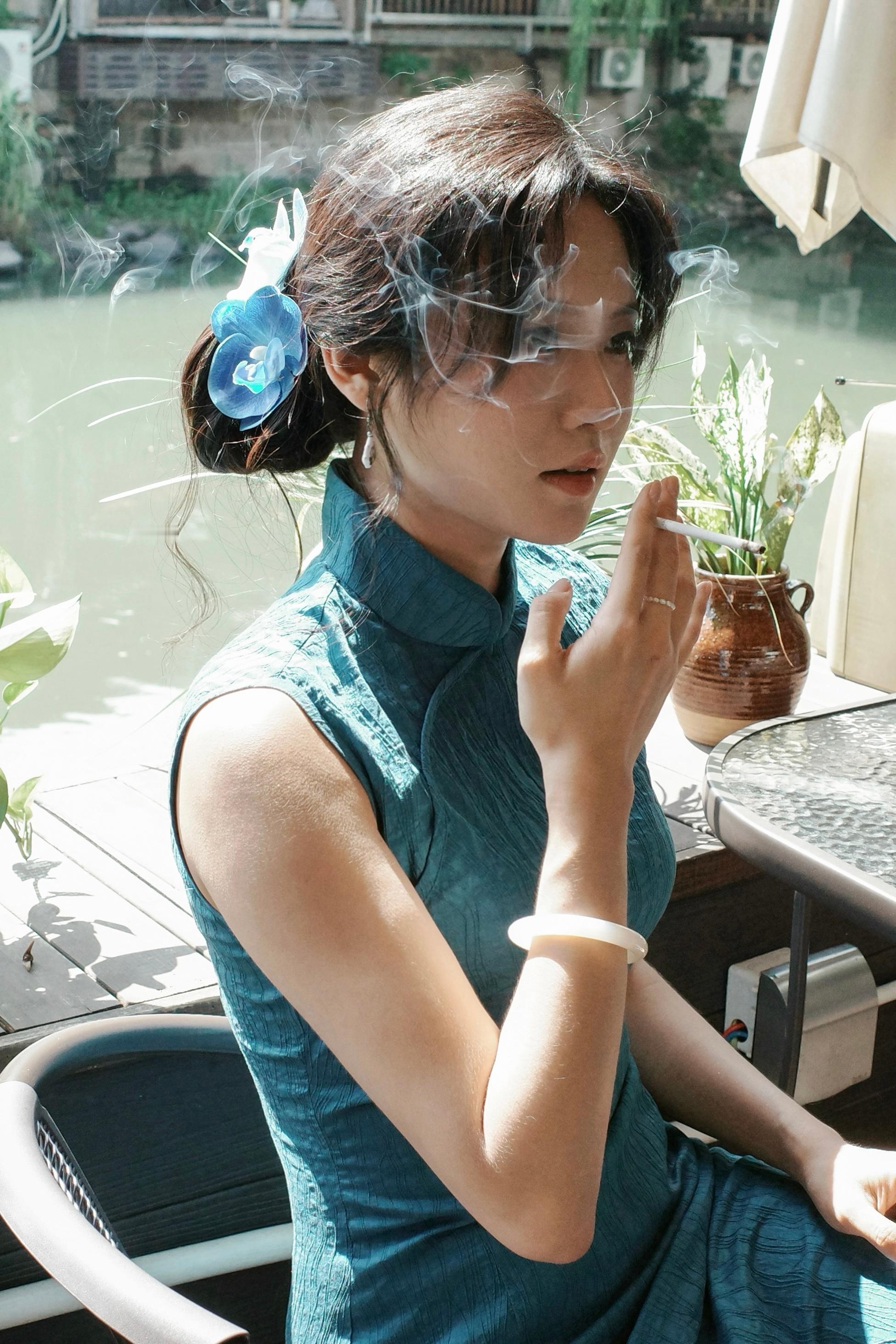 对岸烧纸人弯腰时 整个农历七月开始倾斜