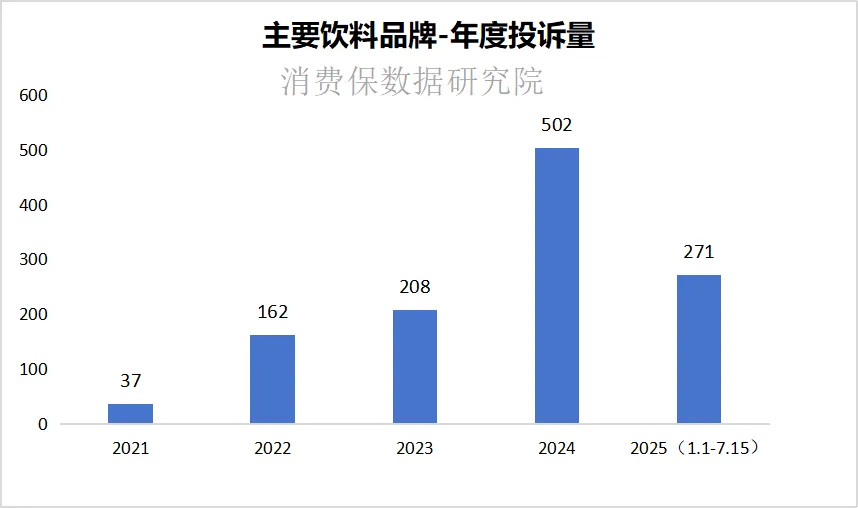 据消费保投诉平台最新数据显示,截至2025年7月15日,消费保平台共收到主要饮料品牌相关投诉1,192件;累计涉诉金额超127万元,投诉解决率仅为12.50%。