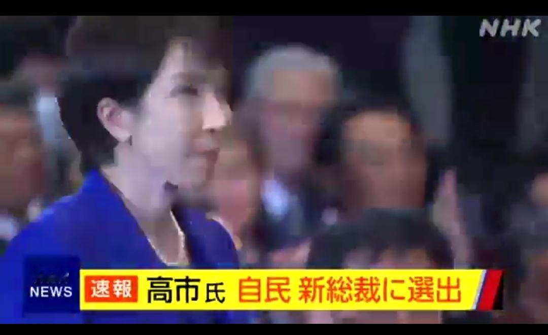 突发新闻!!! 高市早苗当选日本自民党总裁。 她将出任下届日本新首相,日本历史上第一个女首相就些诞生!