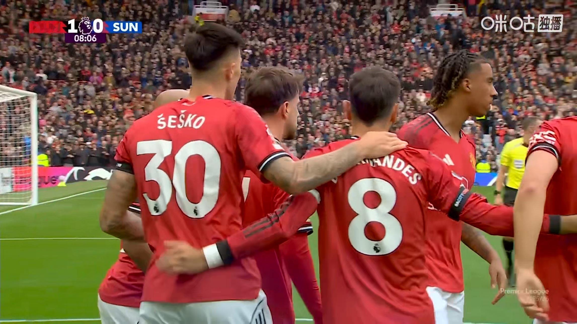 妈妈呀!!我竟然看到曼联进球了!!!还要是上半场开场没多久!!芒特帮助曼联主场1