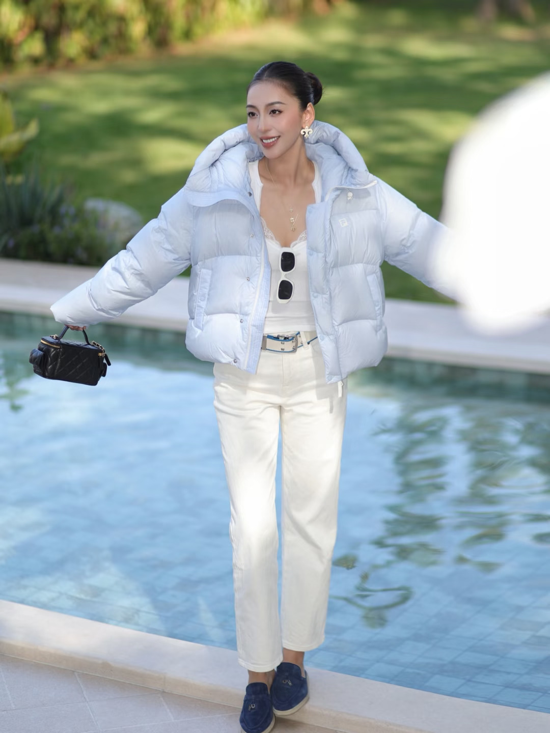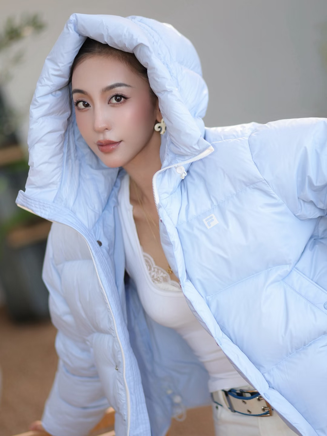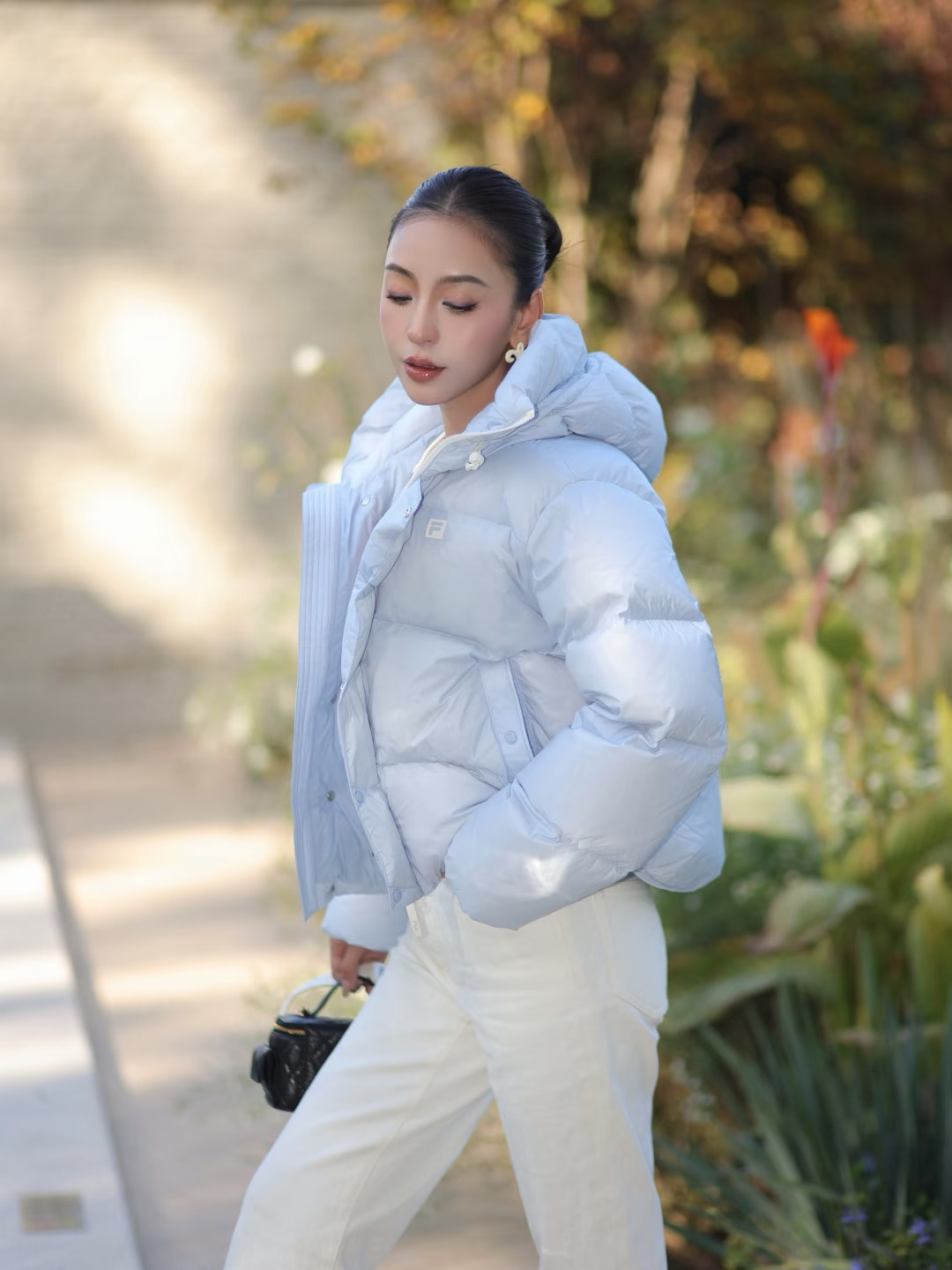 FILA的这抹冬日浅蓝短款羽绒服,像是把晴空的天空穿在身上