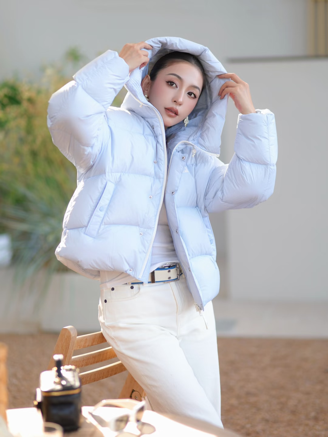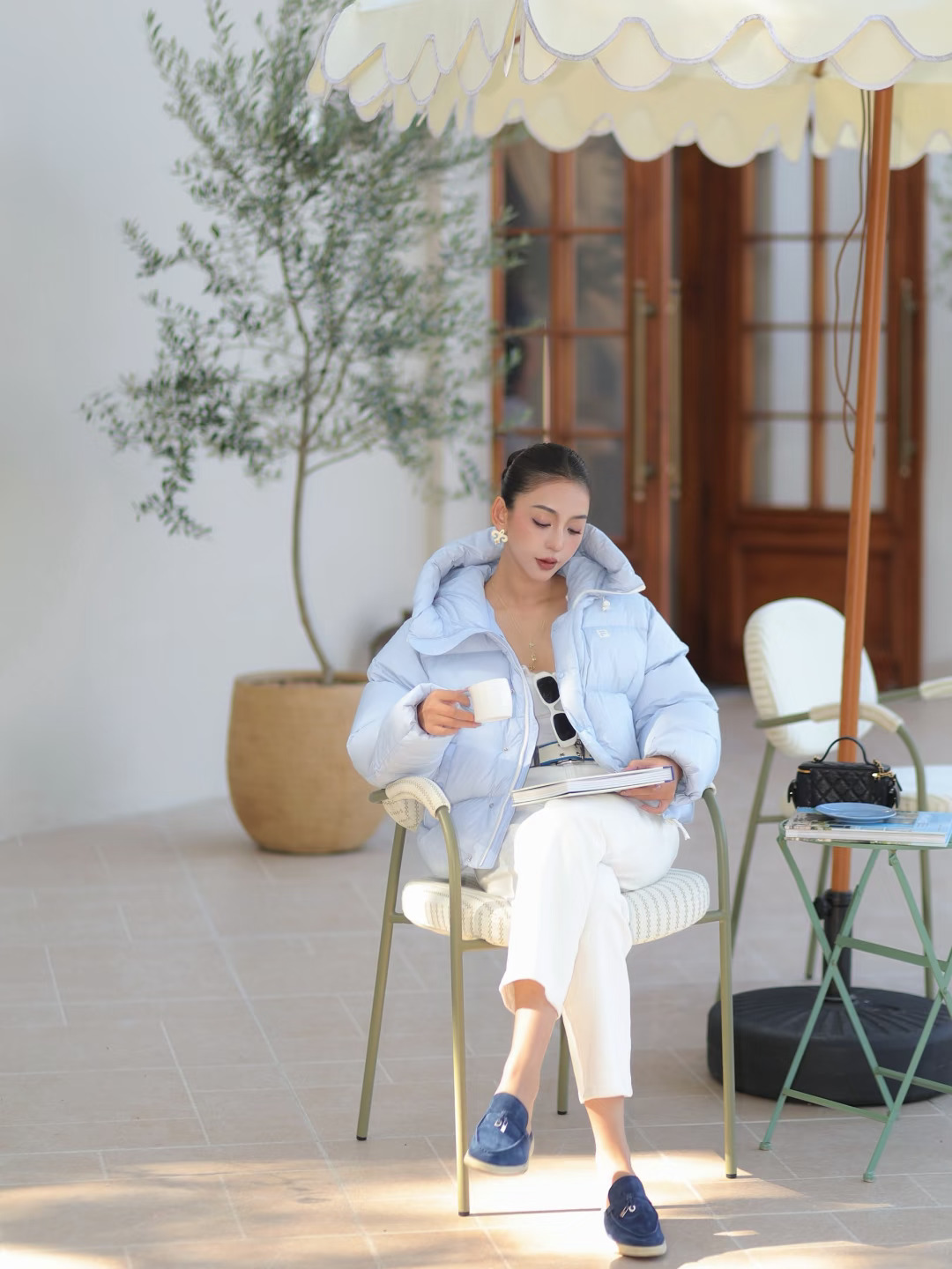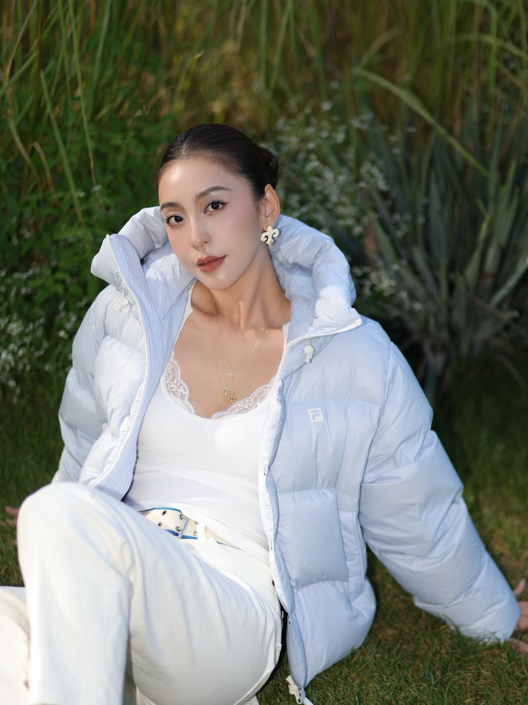 FILA的这抹冬日浅蓝短款羽绒服,像是把晴空的天空穿在身上