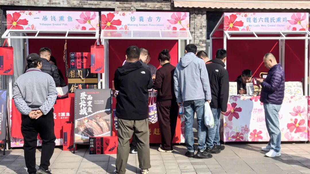 活动期间,老字号企业在景区“老字号山花集市”集中亮相。凤祥、景阳冈、魏老六熏鸡、一吊钱熏鱼、妙囊仁心堂、状元红红木家具等兼具底蕴与活力的老字号,带来了特色美食、养生好物、红木工艺、非遗技艺等多元品类。从传承百年的熏制秘方到精雕细琢的传统工艺,每一件展品都承载着老字号的匠心传承与时代创新,让游客在游览长城之余,近距离感受齐鲁大地的商业文化与匠人精神。