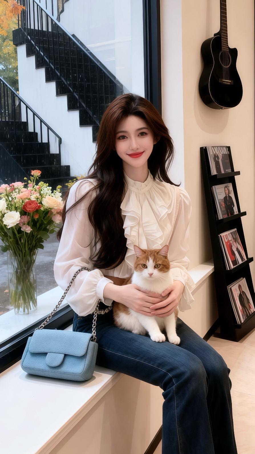 一场秋雨邂逅温柔穿搭与生活情调。秋日的雨,淅淅沥沥地敲打着落地窗,将窗外的树染成了暖黄与橙红的调色盘。就是在这样一个诗意的午后,我在一家充满艺术气息的小店,与这件白色荷叶边衬衫不期而遇。 初见它时,是在橱窗的模特身上。层层叠叠的荷叶边从领口蔓延开,像被风吹起的白花瓣,灯笼袖的设计带着复古的浪漫,又在袖口处收出精致的喇叭形状。那一刻,我仿佛看到了文艺电影里的女主角,在秋日街头从容漫步的模样。 试穿的瞬间,轻薄的面料温柔地贴在肌肤上,自带的垂坠感让每一个动作都变得优雅起来。搭配高腰微喇牛仔裤,既能勾勒出腰线