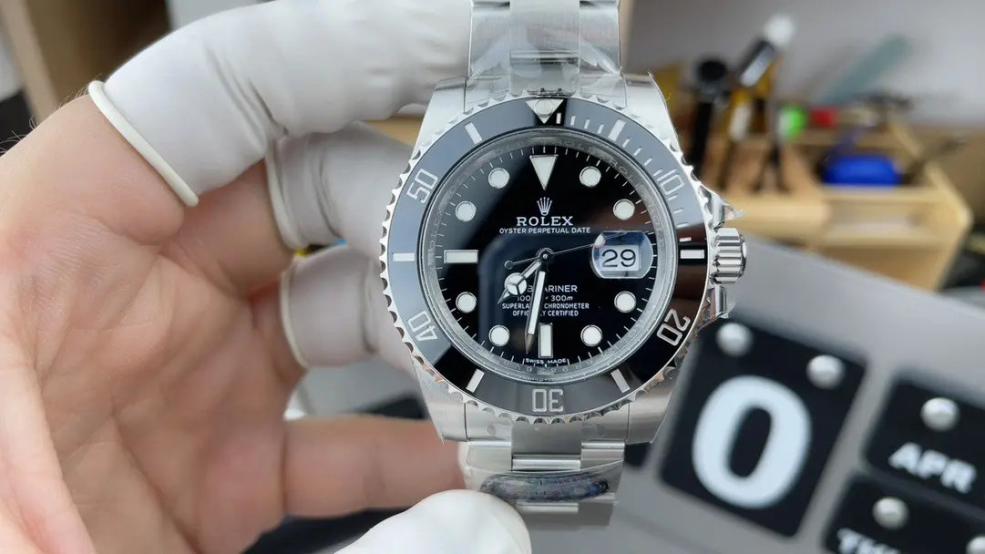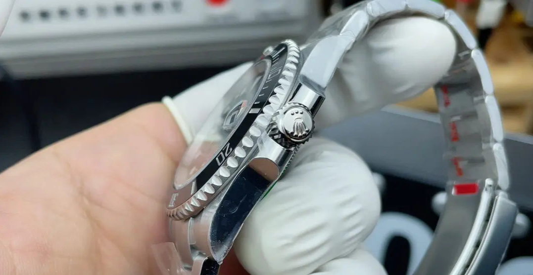 C厂劳力士黑水鬼圈口细节:独家clean v5版本颜色无限接近原装 clean陶瓷类配件陶瓷圈夜明珠,是温润如玉夜光珠不是死白色的, clean陶瓷圈+夜光珠完美复刻原装的。像C厂3135黑水鬼的陶瓷圈夜明珠凸起刚刚好、是平整的不会高出来很多,别的厂夜明珠凸起高很多,如果夜明珠凸起来高很多是不对版,所以大家可以通过夜明珠去分辨。c厂和正品区别可以说是一模一样。单向旋转的陶瓷圈口,声音非常的清脆。转动一圈是120个卡槽点,可以根据声音去判断。还有一个重要的细节点,夜明珠对准12点位置,向左旋转10下(根据声音来判断),夜明珠的位置一定是停在十一点刻度位置。