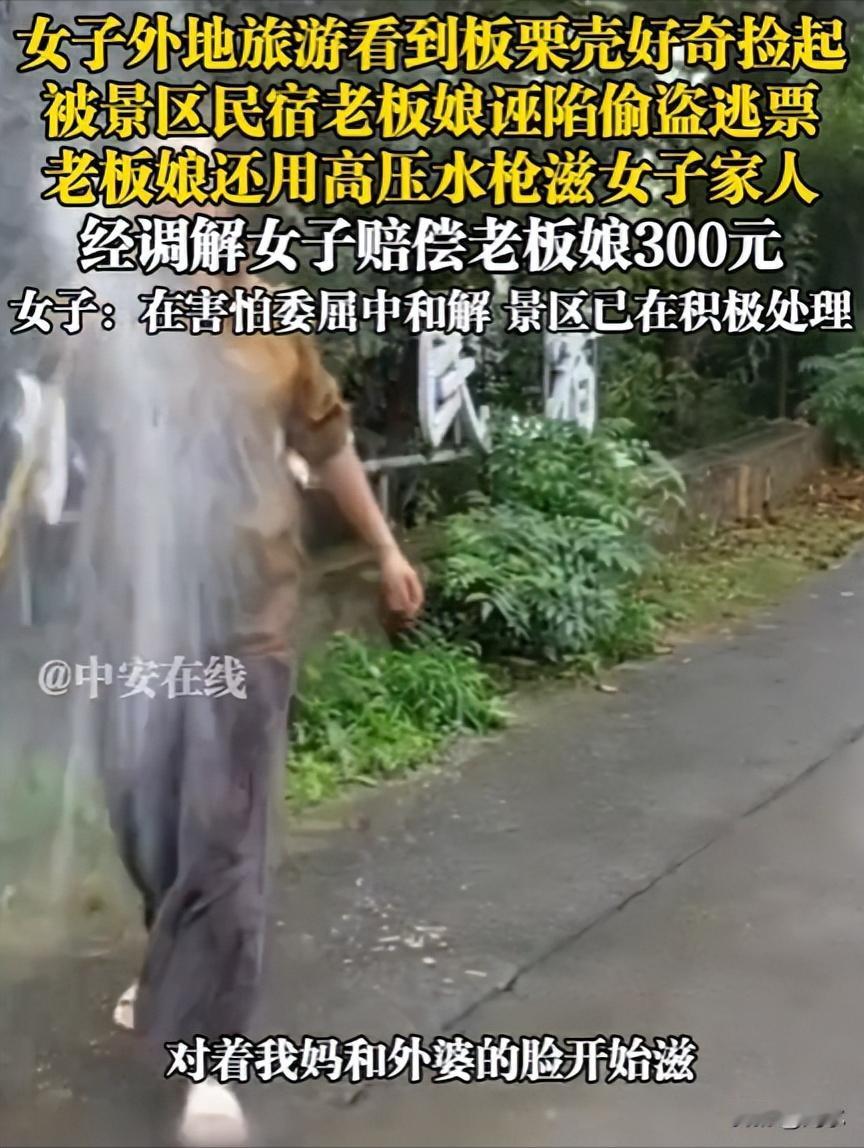 游客称捡板栗壳被民宿老板娘诬陷偷盗,首先,说明这个民宿老板娘不局气,没有格局,别说是掉在地上的板栗壳,就是板栗你给人家拿几个又如何?更何况人家游客捡几个,又有什么损失?该局气时候局气一点没有什么损失。 其次,和气生财,尤其是做民宿这种,一定是要拉拢顾客的,本来不值钱的东西,你还拿高压水枪滋人家家人,这多少有些说不过去了,非要把这种小事儿弄得人尽皆知,还让人家赔300,这种民宿以后谁还敢去?如此下去,这样的民宿是开不长的。