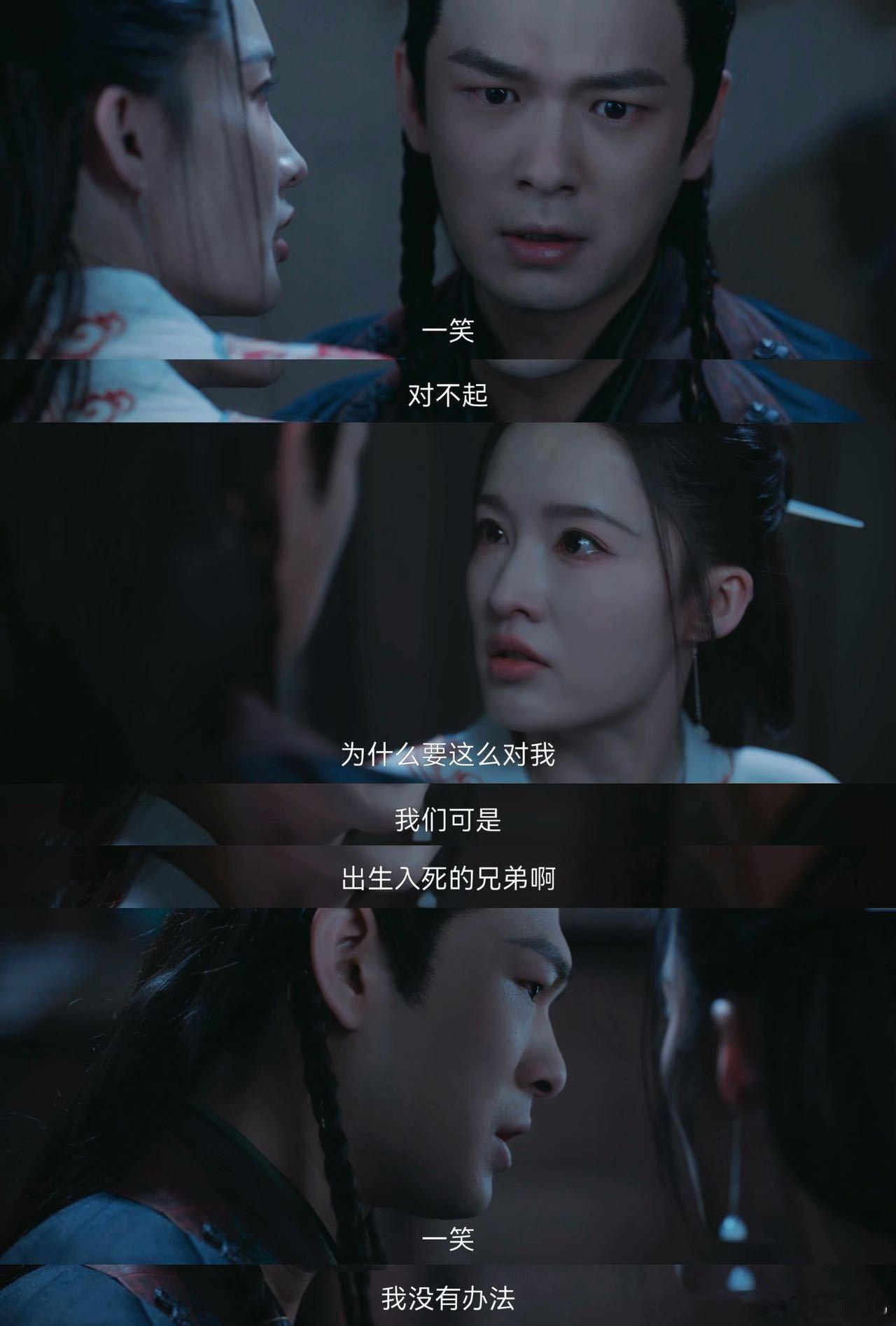 嘴上掏心窝子手上连捅刀子 每当想起《一笑随歌》里付一笑与萧未然“锦绣三杰”的情谊,心就像被狠狠揪住。曾经一起出生入死,那些热血与信任都刻在骨子里。可重逢后,付一笑毫无保留地掏心窝子,萧未然却反手一刀,付一笑眼睛颤抖、泪光闪烁却强忍着,这得多疼啊!一笑随歌 真的太虐心了!