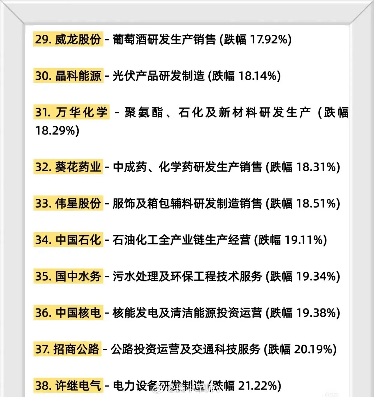31. 万华化学 – 聚氨酯、石化及新材料研发生产(跌幅18.29%)