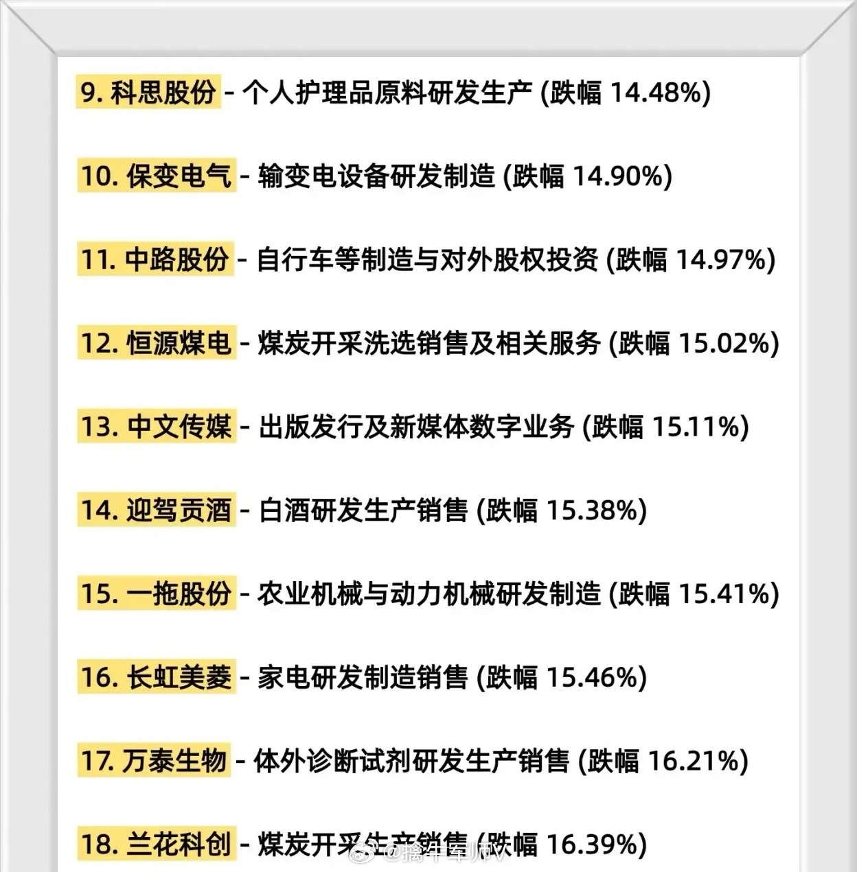 11. 中路股份 – 自行车等制造与对外股权投资(跌幅14.97%)