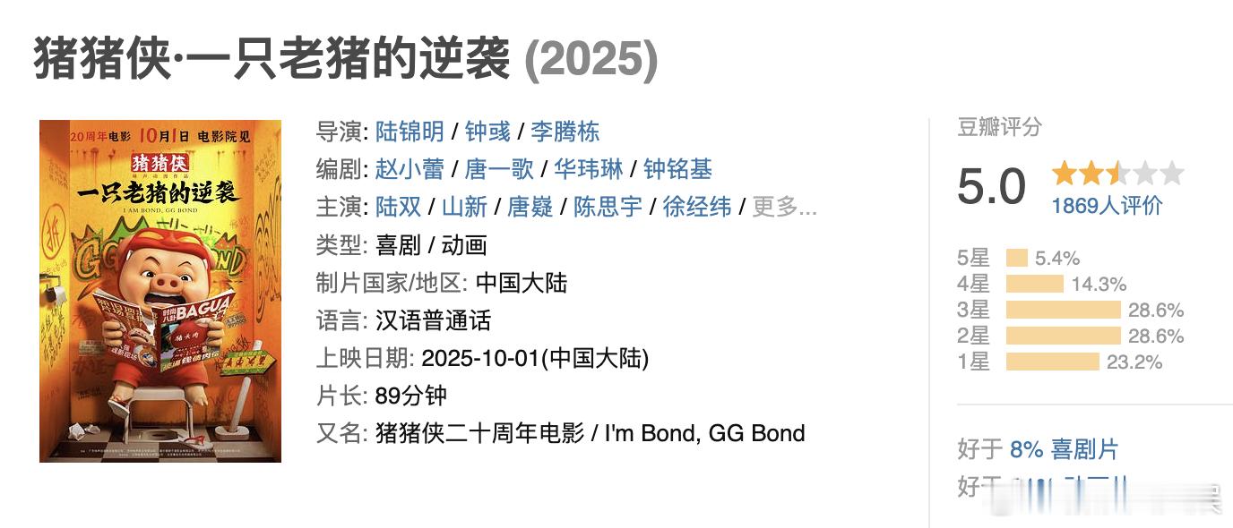 《猪猪侠·一只老猪的逆袭》开分5.2→5.0