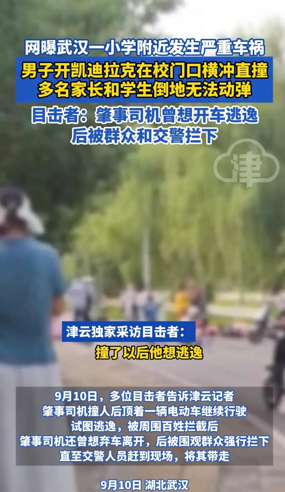 9月10号早上7点,正值上学高峰,湖北省武汉市潭湖东路的臧龙第二小学门口却发生了一起令人心惊胆战的交通事故。一辆白色的凯迪拉克SUV如同失控的猛兽,在校门口附近横冲直撞,将平静的上学路瞬间变成了恐怖的灾难现场。